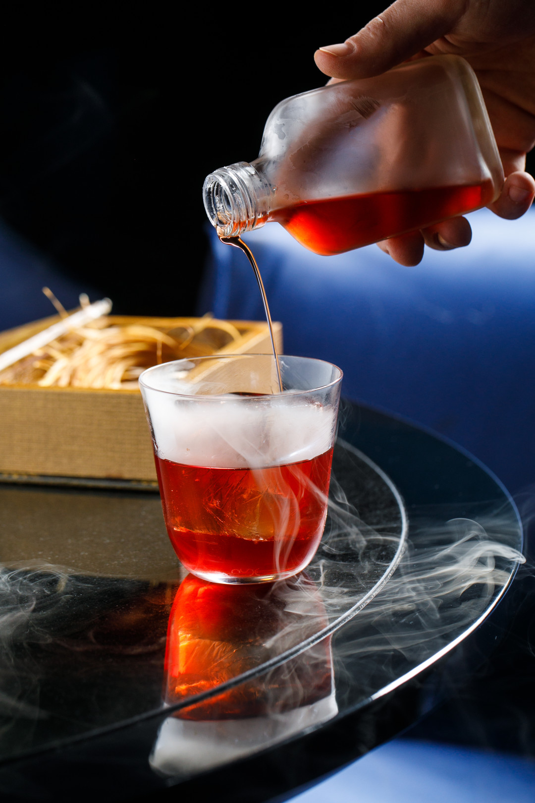 Негрони — классика, за которой (в том числе) приходят в Xander. «Сложным» его сделала команда бара, когда решила, что каждый чистый алкогольный напиток уникален, и смешала 5 видов джина, 6 типов вермута и 5 разных биттеров в одном бокале.