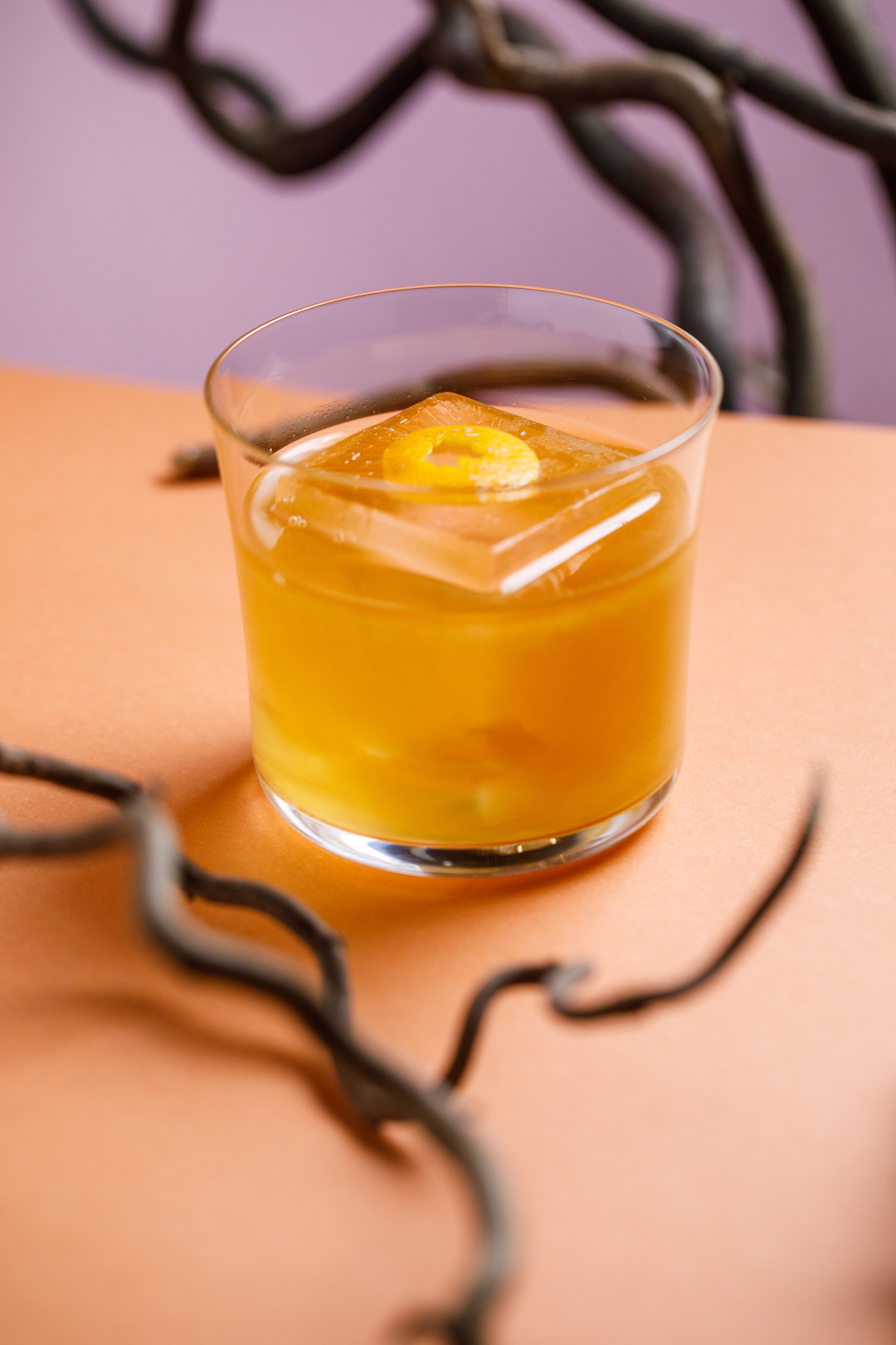 Осенний золотой коктейль с бергамотом, персиком, звенящим игристым и стойким джином.
