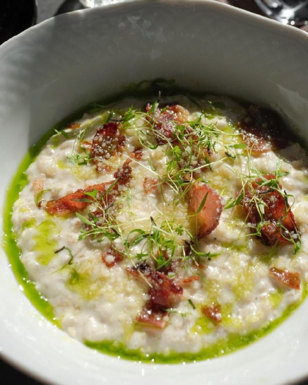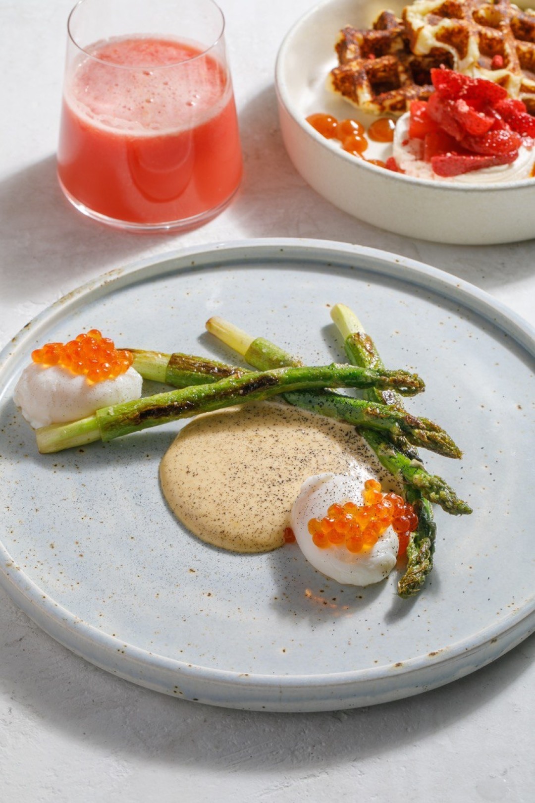 Дима Богачев и Эльдар Мурадов поняли, насколько завтрак — важный прием пищи и впервые сотворили отдельное меню с утренними устрицами в трех исполнениях: с лимоном и имбирем, страчателлой и грибами шимеджи или маракуйей и табаско. Дают блины и вафли, готовят крупы и хлеб, а также несколько видов яиц, включая цесарки, отваренное в термальной воде, с икрой и спаржей. А еще угощают игристым (безалкогольное тоже есть)!