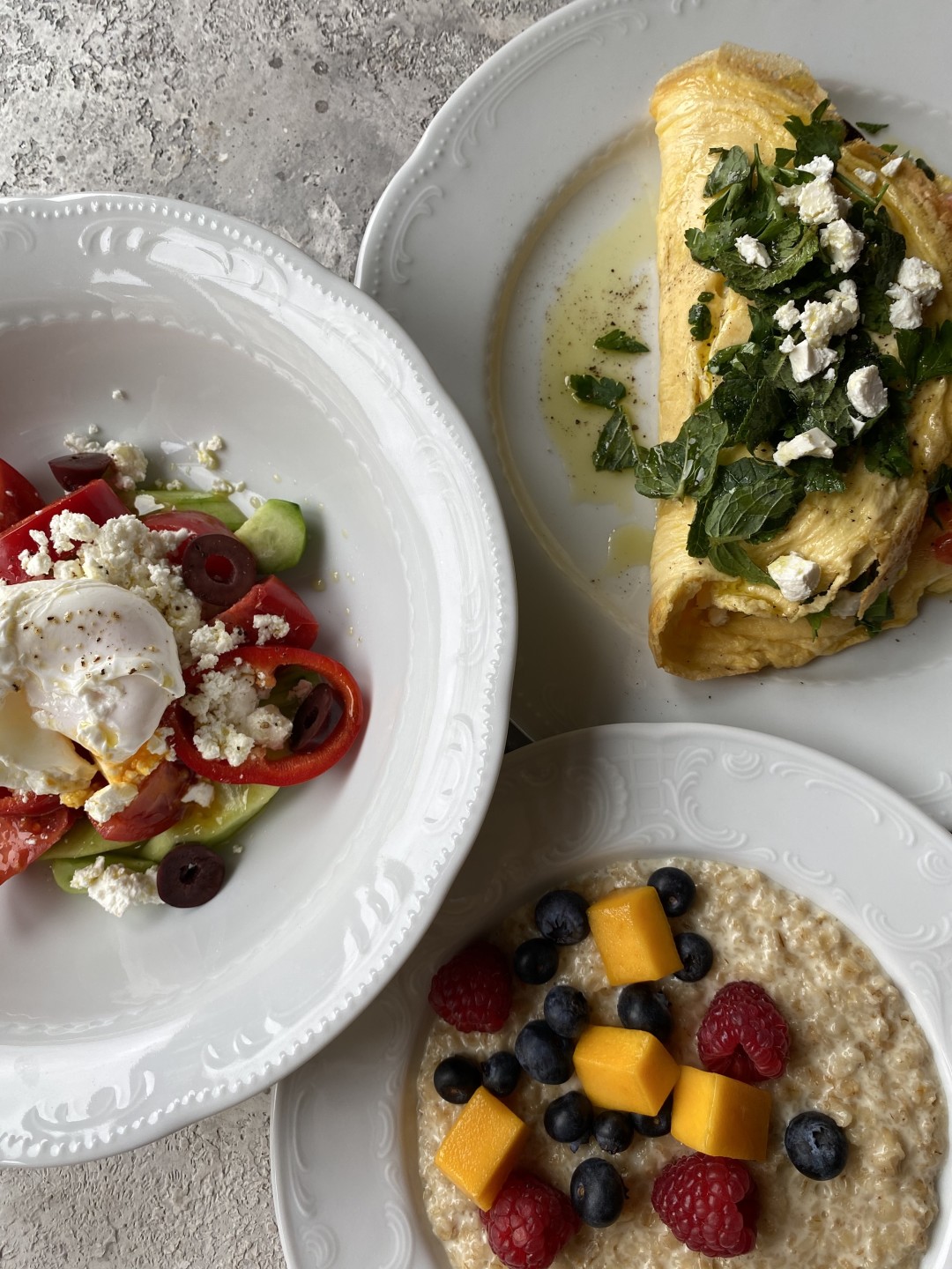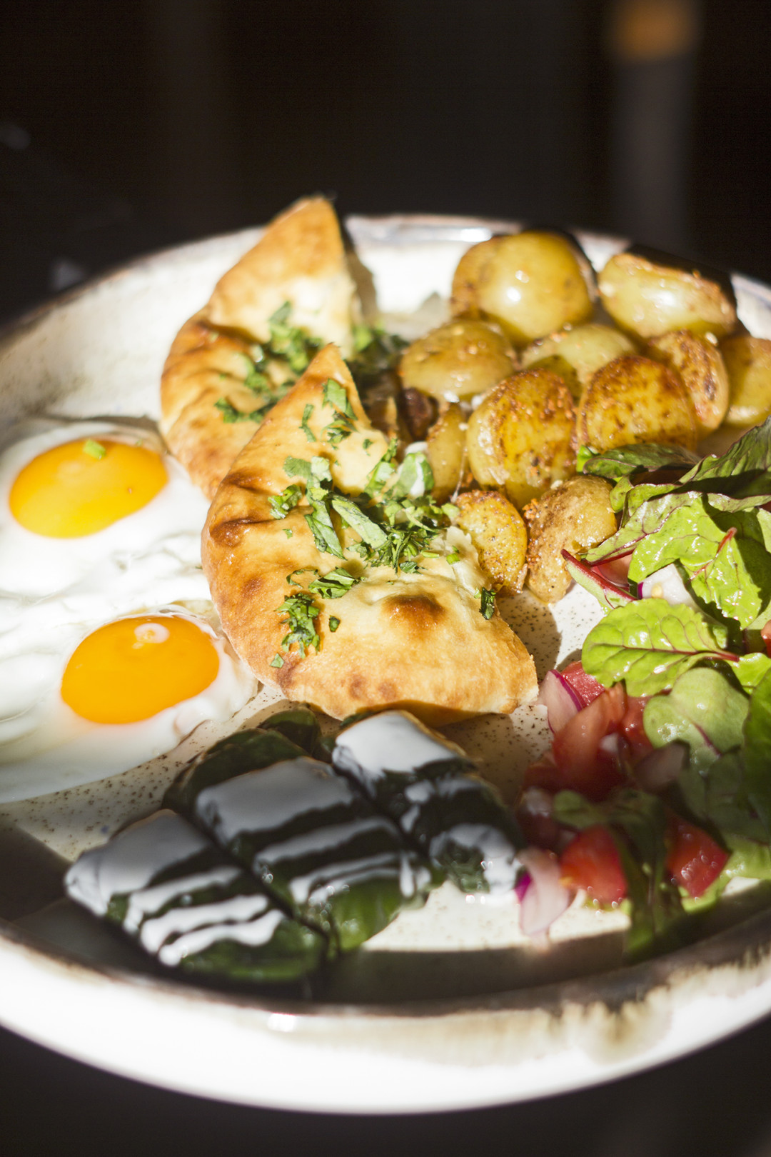 В греческом представительстве на Петроградке ранее утреннее меню только запустились — с 8:30 по будням и с 10 по выходным берем яйца в 7 формулировках, лепешки или уже собранный большой завтрак с фермерской фетой, изумрудными оливками и хумусом! Комплиментарная пита из печи и обязательные мезе — дзадзики, харисса из печеных перцев с греческим йогуртом и тапенад — нужно брать все и в стол.