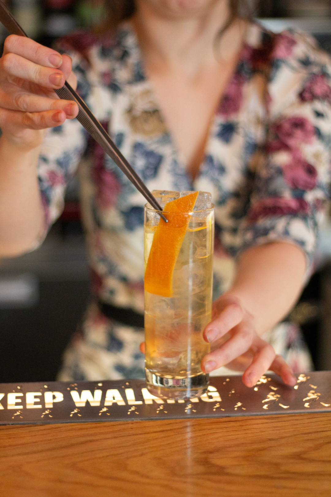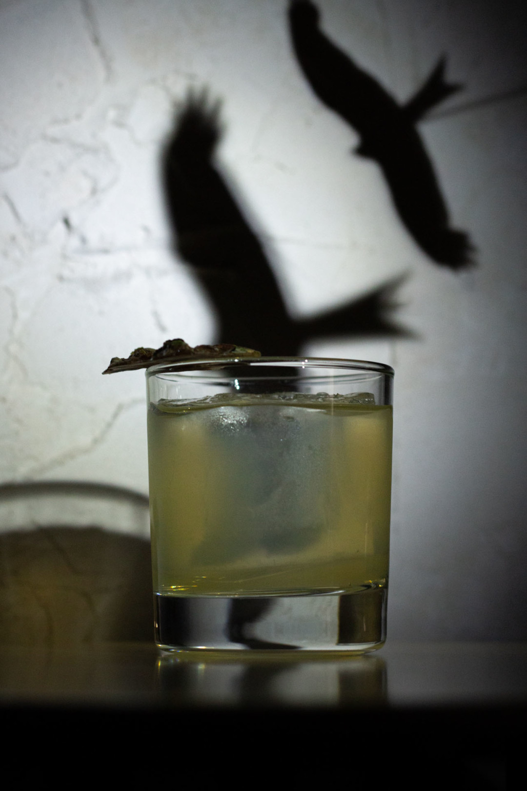 «Леопард» обозначен в названии, потому что коктейль отправляет в саванну — африканский во вкусе, но совсем не в составе. Дымный виски, ройбуш, фруктовость айвы, кислотность рислинга и хризантемовая содовая он топ.