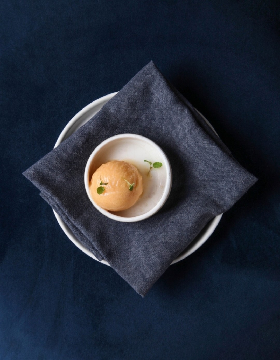 Фотогеничный десерт готовится по старинному итальянскому рецепту (так говорят). Сорбеты хоть и делаются в Санкт-Петербурге, но неизбежно транспортируют нас на такой далекий экзотический пляж (во всем виноваты манго с кокосами).