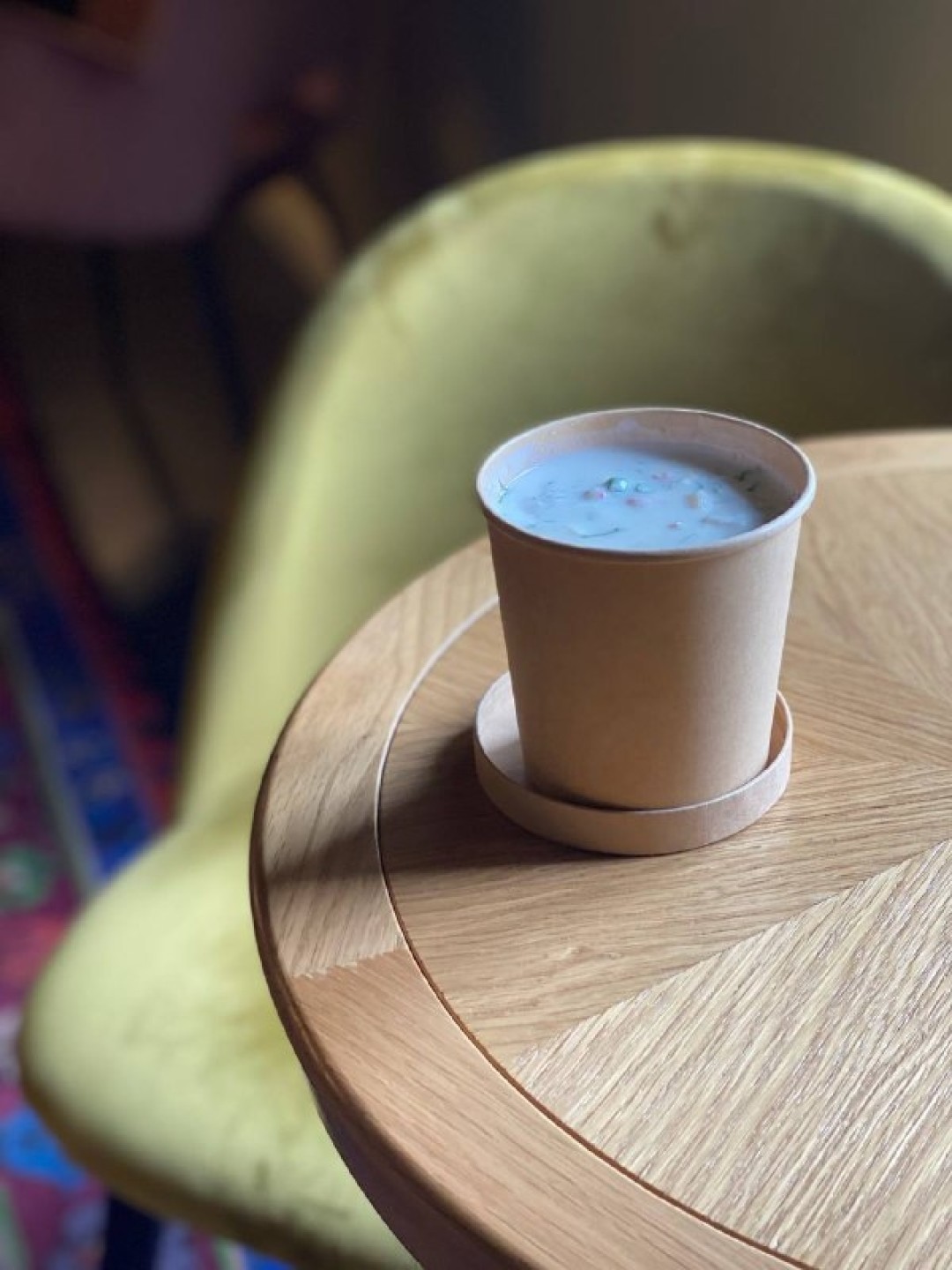Израильский суп (390 руб) готовят из йогурта, добавляя ароматные специи заатар и сумах. Свежих оттенков добавляют огурец, мята и цедрой лайма.