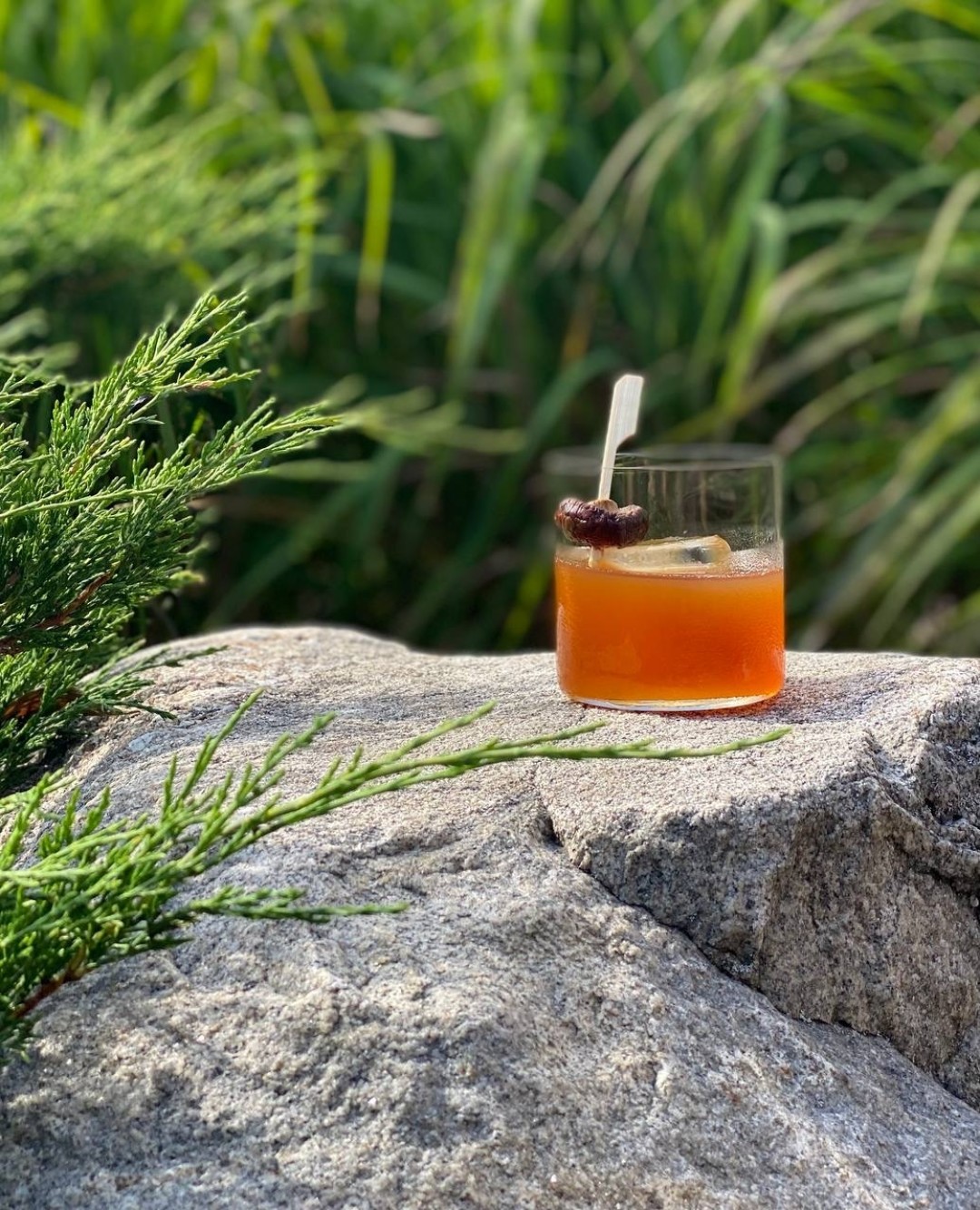 В Nordic бурбон настаивают на грибах шиитаке, соединяют с апельсиновым биттером и естественно сладким сиропом из стевии и макадамии.