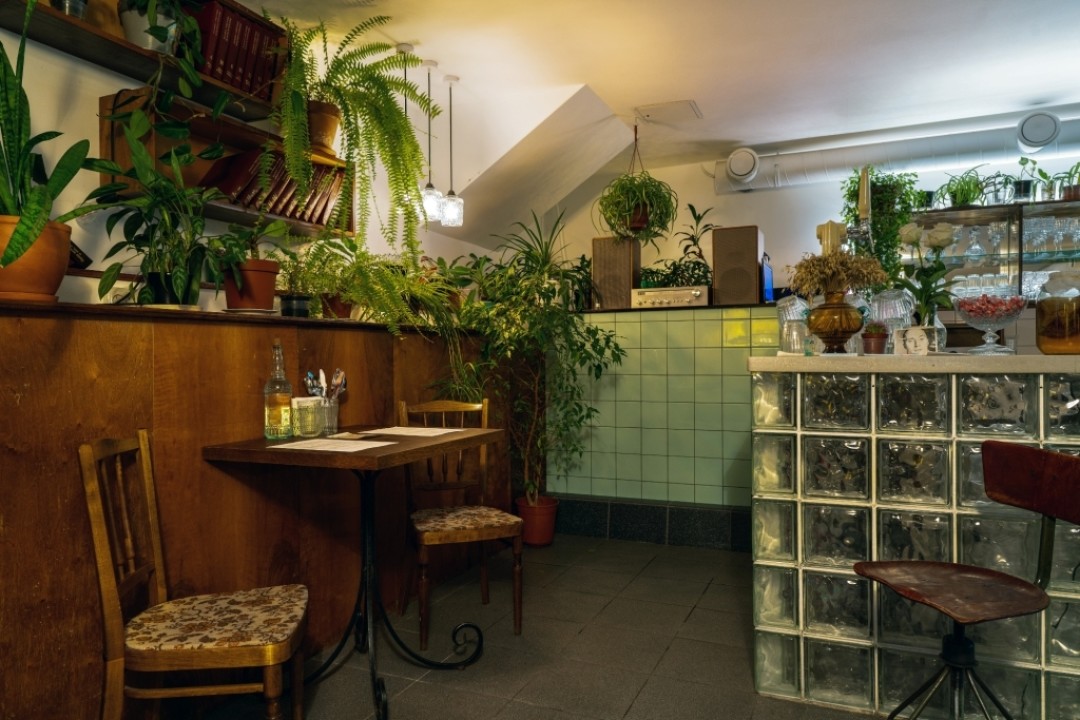 Винный бар создателей винотеки Vinofeel: Ольга Самсонова и Никита Рачинский сделали карту с понятной навигацией, удачно представленными российскими производителями и эксклюзивным лобби виноделен из Восточной Европы. Меню тоже необычное — от мятого горошка с соусом из трав до «кукурузотто» с креветкой.