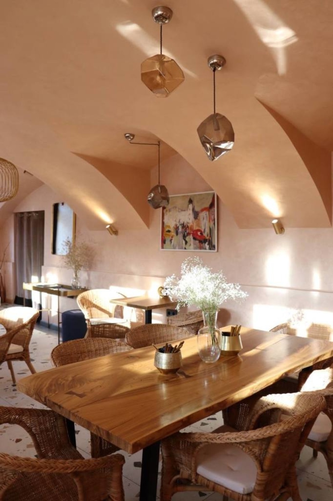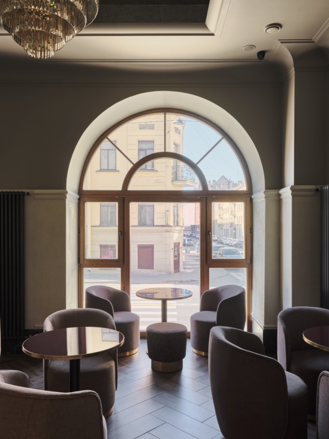 Кофейня в пудрово-розовых тонах запросто могла бы стать сеттингом для фильма Уэса Андерсона: ее интерьер к тому же косплеит отель с ресепшеном, лобби и номерами. Меню под стать мимимишному аутфиту — нарядные тарты с ягодами, эклеры, пирожные, рубиновые шоколадные стаканчики, какао с маршмеллоу и ореховый латте.