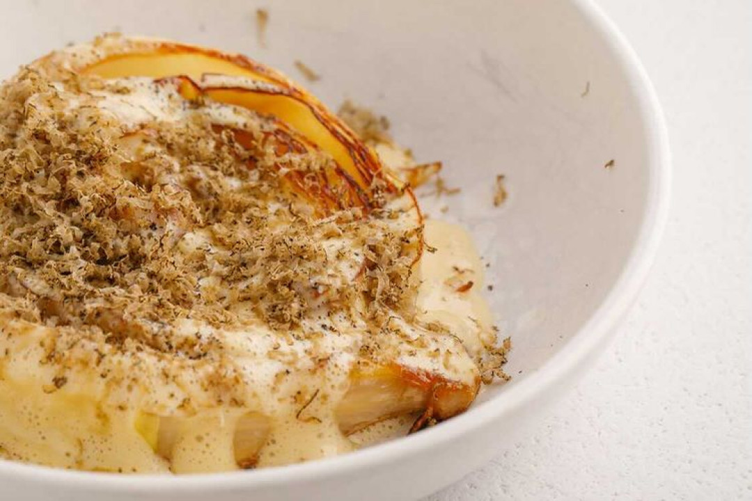 Капусту Павел Демин обжаривает, поливает соусом из горгонзолы и посыпает карамелизированными грецкими орехами. Без фирменной для шеф-повара ферментации тоже не обошлось: в блюдо идет карамель из мисо, и пасту делают не как обычно из соевых бобов, а из оставшихся в ресторане хлебных корок.