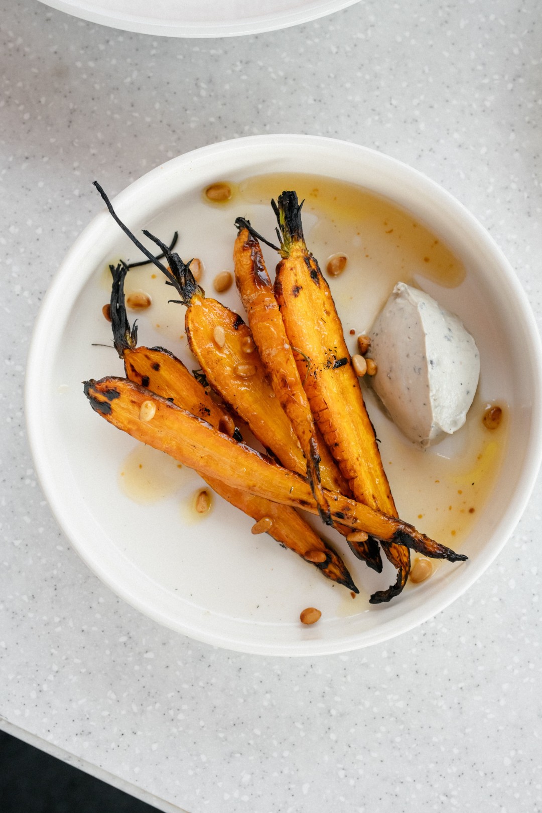 Певец овощей Руслан Закиров может сложить гастрономическую поэму про любой из них. Кулинарный же гимн в честь морковки — в фаворитах и у самого шефа, и у всех гостей Kuznya House. Все дело в сладко-солёной кульминации: к молодой фермерской моркови с гриля идёт как островатый сыр горгонзола, так и кленовый соус.