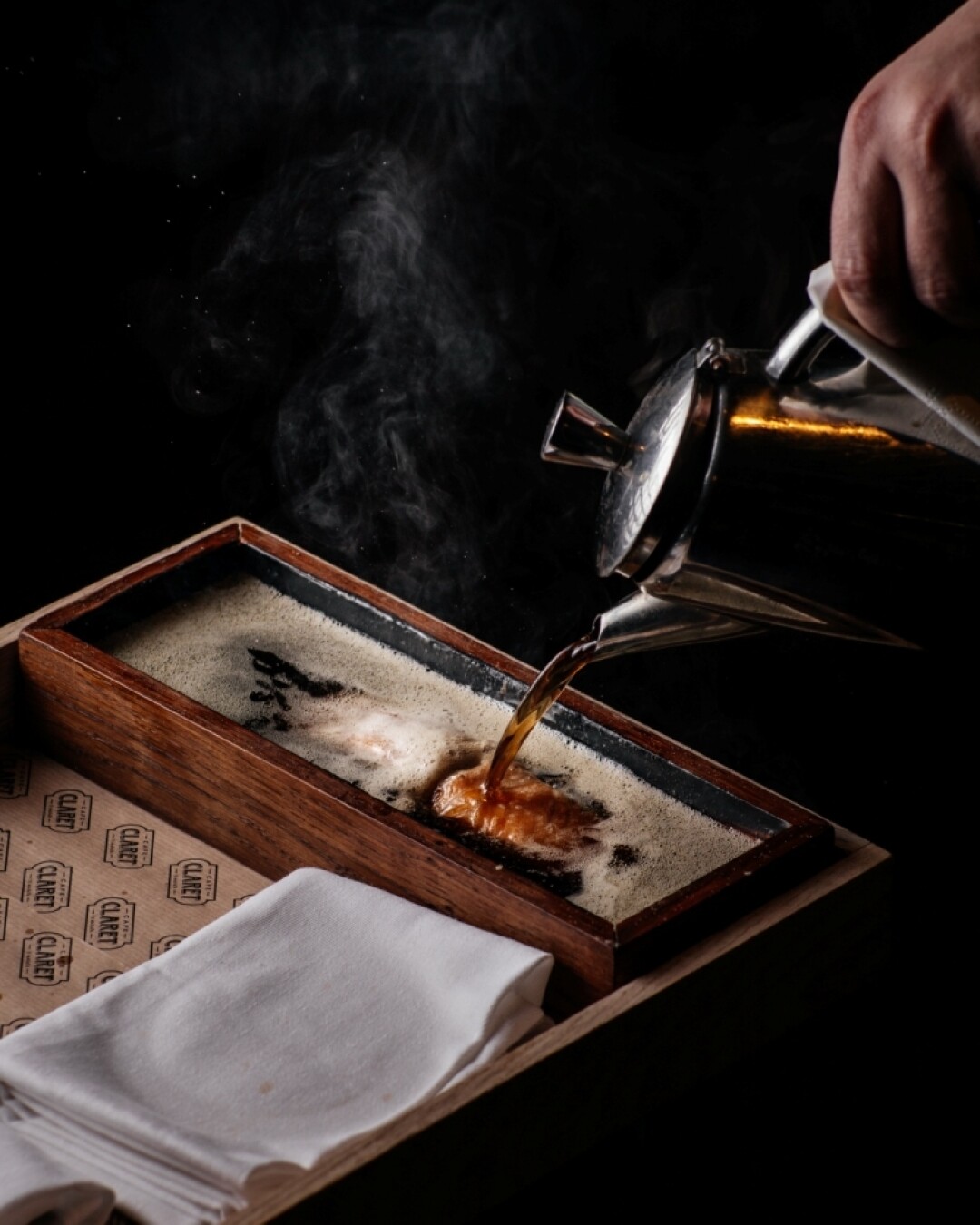 Александр Богданов обновил меню в ресторане кафе отеля «Гельвеция» на Марата, 11. Рекомендуем обратить внимание на форель в воске. Рыбу, сдобренную медом и солью, заливают кипящей восковой массой на 4,5 минуты. Если сегодня у вас не рыбный день, возьмите пельмени с мясом кабана, тушеным 24 часа в собственном соку со специями.