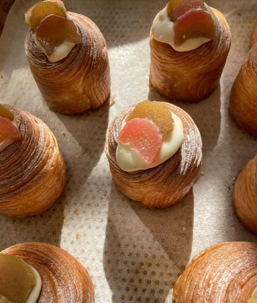 Хрустящий снаружи и воздушный внутри «узелок» с заварным кремом с фисташками так хорош, что ему выпустили спин-офф — с брусничной и лимонной начинкой.