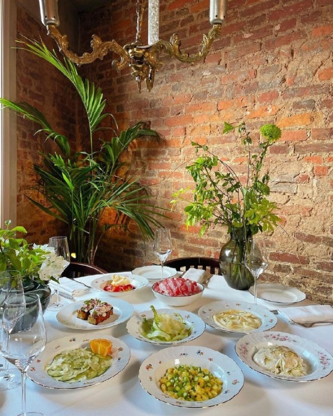 Новое меню fresco e crudo — это ода продукту и фокус на чистом вкусе сезонных сырых овощей. Карпаччо из цветной капусты дополняют муссом из черного трюфеля, тот что из цукини подают с пармиджано реджано, а к спарже добавляют тахини. Получилось очень свежо и по-летнему!
