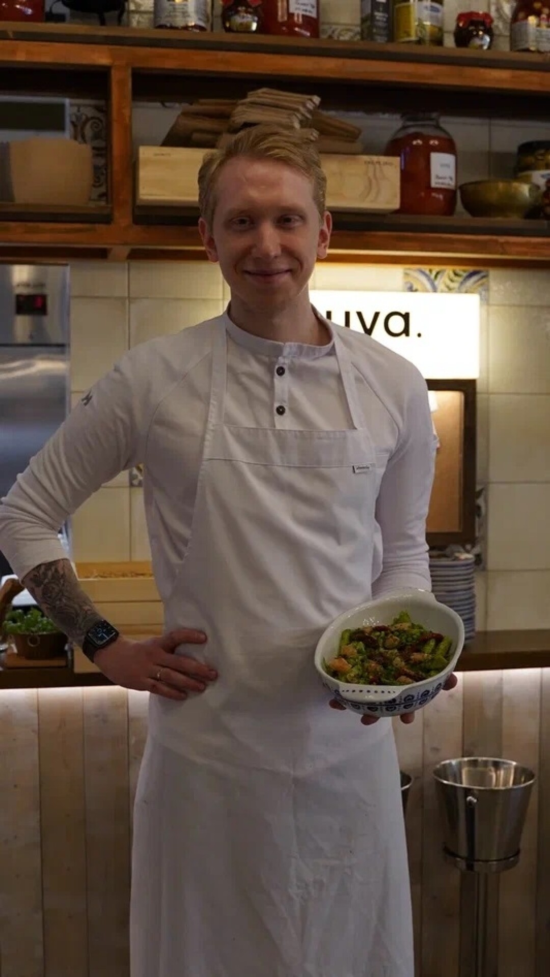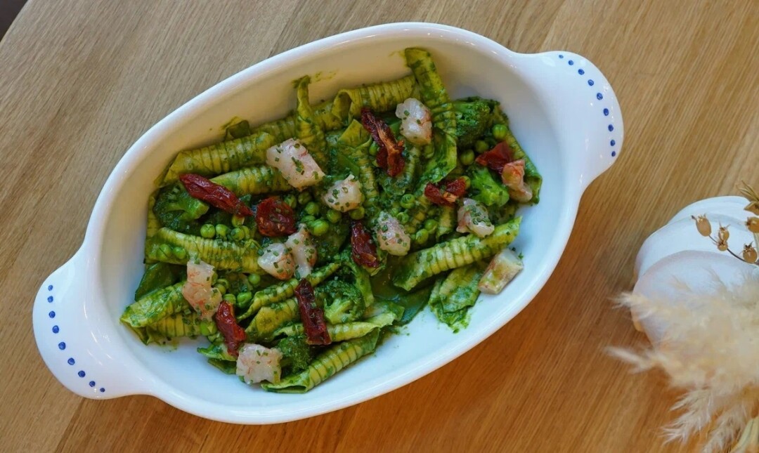 В итальянском ресторане Никиты Сечина каждый месяц будет появляться новый спешл от шеф-поваров других проектов. Первый на очереди — Рома Киселев из Nothing Fancy, выпускник кулинарных французских школ Ecole Ducasse и Le Cordon Bleu. Весь июль в Uva можно попробовать очень летнюю зеленую пасту гарганелли с овощами, лангустином и подвяленными томатами.