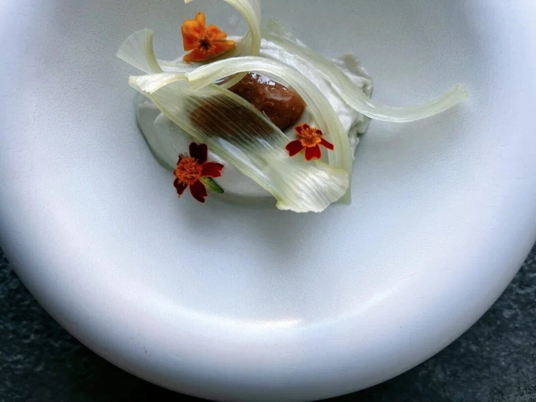 Шеф Виталий Папп вывел новый стройный сет на 8 курсов. Открывает его хлеб с зелеными стеблями, сменяет молодой редис в маковом кляре и соусом тоннато, за ним — гребешок с еловыми побегами и кольраби. Самый летний гастродроп — цветки цукини, фаршированные мягкой рикоттой с айоли из рукколы. Десерта два и оба отличаются от привычных сладких пирожных или конфет: ганаш из авокадо с ревенем и панакота из матчи и липовых соцветий. В пару к блюдам сомелье Люда Иванова выбрала шампань от винодела Тьерри Фурнье.