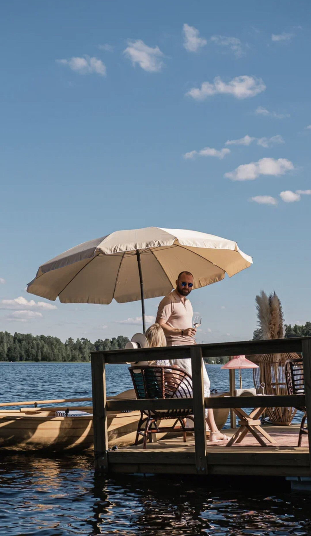 Команда бара Roots в загородом клубе We Lodge запустили летний поп-ап — плавучий бар-плот посреди Медного озера (вмещает компанию до 4 человек) c коктейлями, закусками и комплиментарной бутылкой игристого. Здесь же можно устроить романтический пикник на электро-катамаране или деревянной лодке, сходить на утреннюю тренировку с элементами йоги и дыхательных практик, сыграть в Gin Casino или послушать живую музыка на террасе.