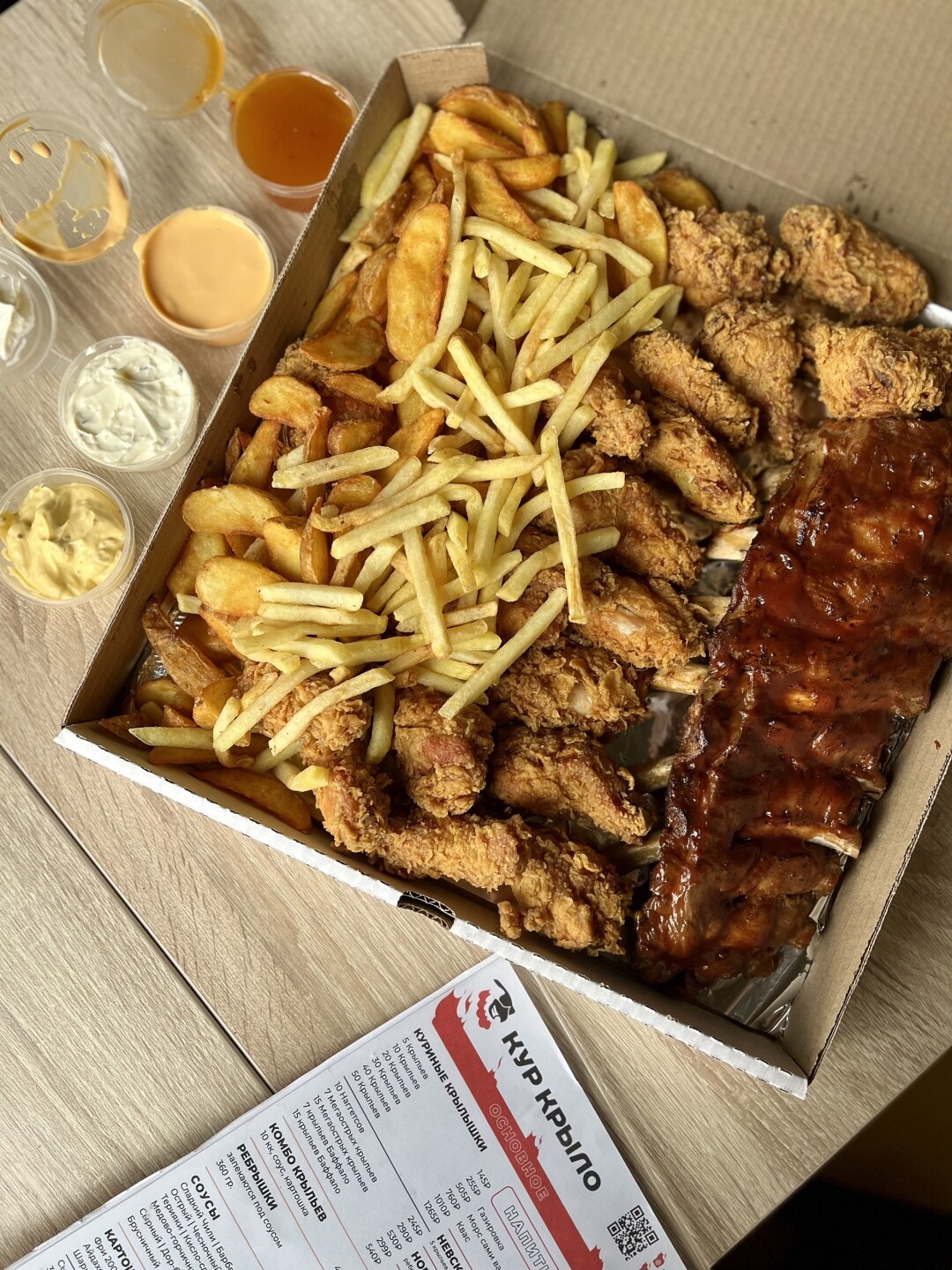 Проект Аркадия Павловского стартовал в 2020 году — как ремесленная альтернатива фастфуду с жареной курицей. У крафтовых баскетов с крыльями (есть сырные и том ям, терияки и баффало) в Петербурге уже 14 точек, и вот-вот «Куркрыло» полетит по стране.