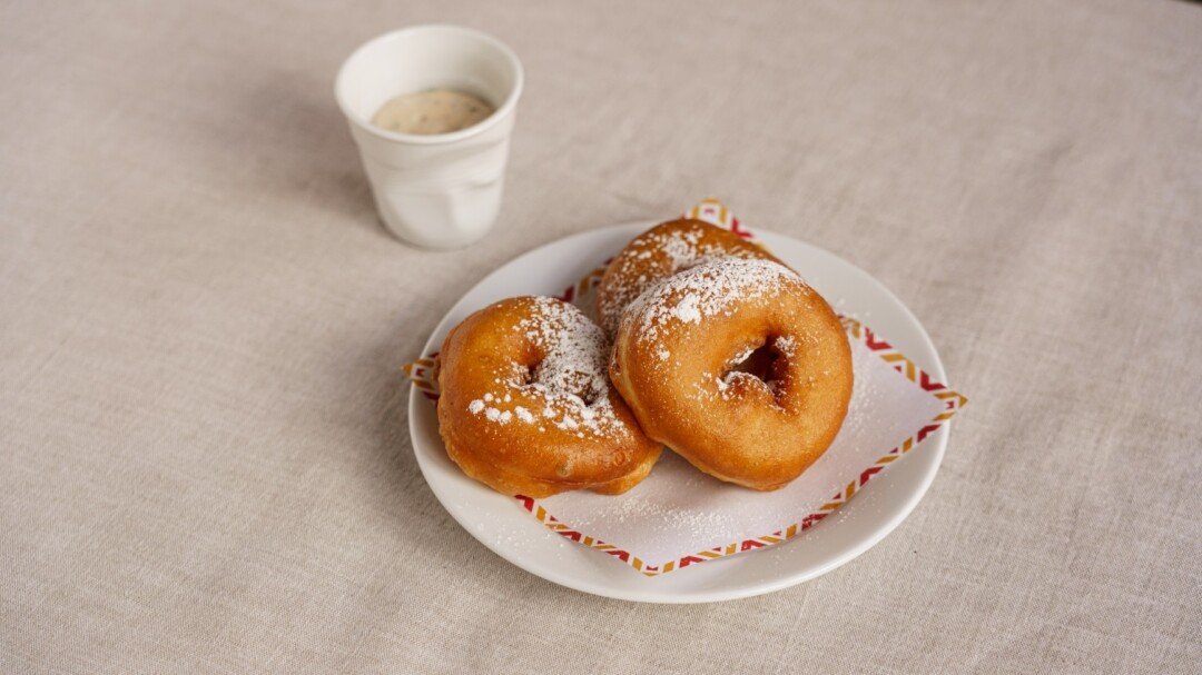У Игоря Гришечкина культовые пышки с Большой Конюшенной, 25 стали горячей закуской из несладкого заварного теста с начинкой из палтуса и трески. В соуснике, точь-в-точь стаканчик от кофе, подают соус ремулад с кетчупом из маринованных томатов.