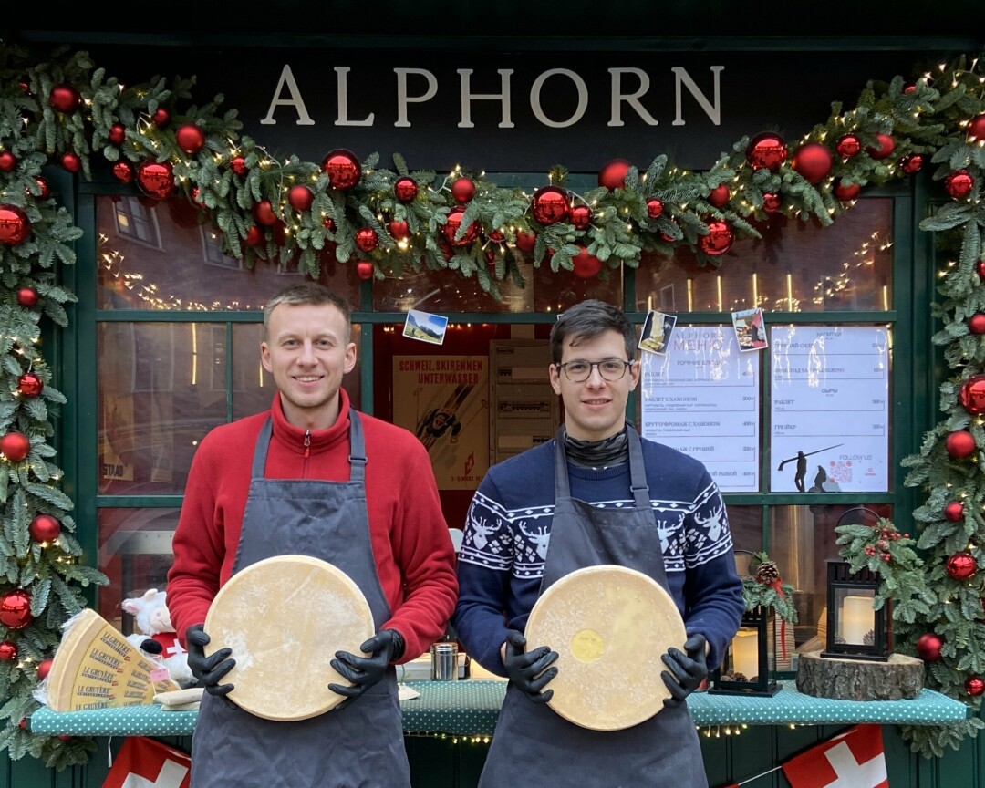 Швейцарский стритфуд Александра Гребенкина годами в ярмарках участвовал как поп-ап, а теперь обзавелся базой у Телебашни. Расплавленный ароматный раклет срезают на молодой картофель, черри, корнишоны, маринованную капусту и рваную говядину.