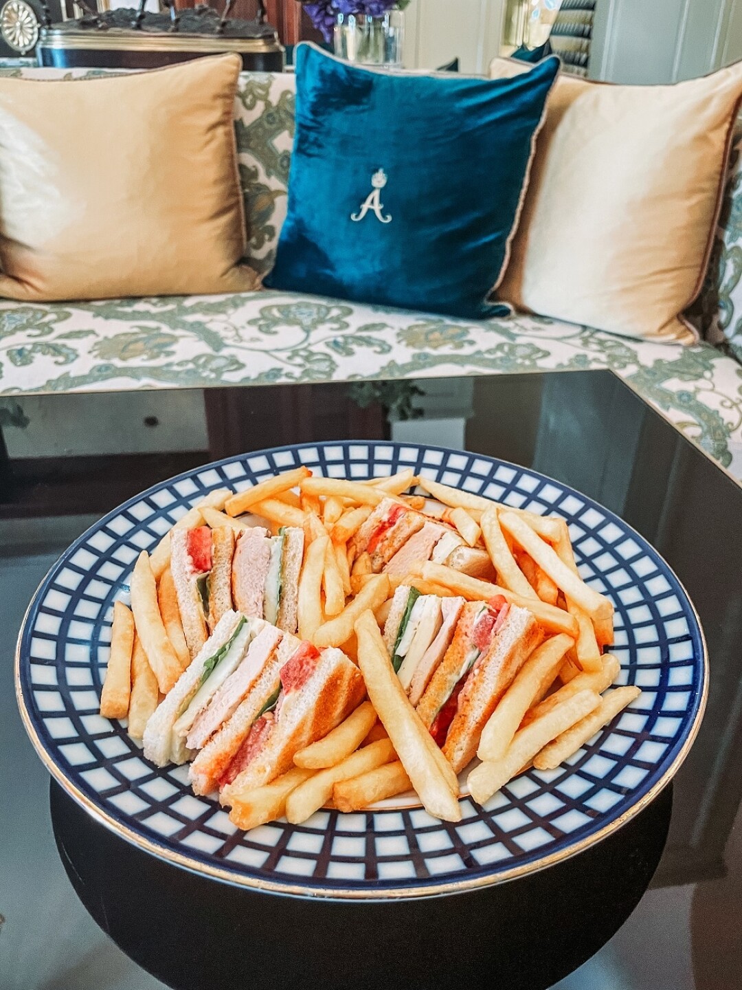 Фирменный сендвич гостиницы гордо называется Astoria, потому что в нем все тоже чинно, но доведено до совершенства. Несколько ярусов из подрумяненого хлеба, куриная грудка и бекон на гриле, омлет с травами, томаты, айсберг и домашний майонез.