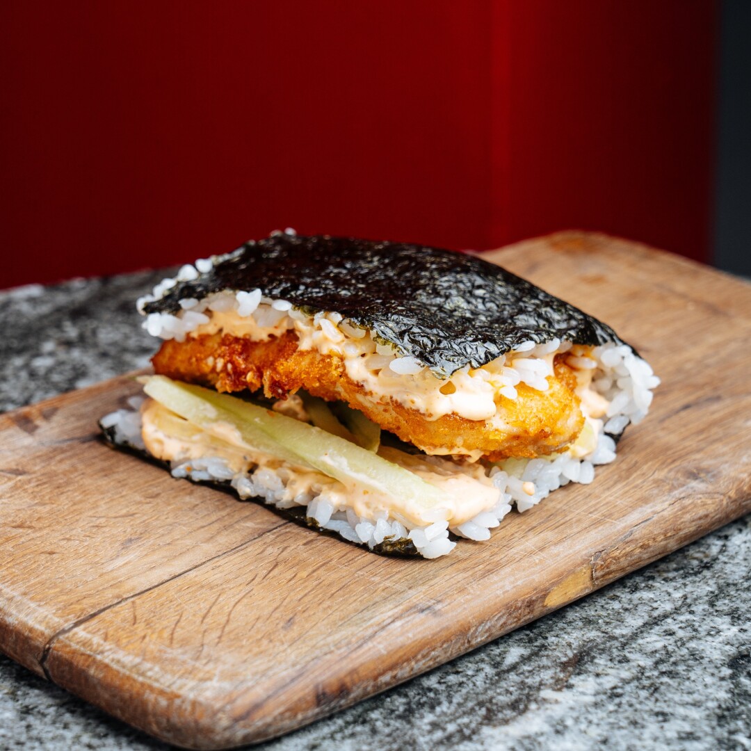 Суперпопулярный мэшап сендвича и суши, который начала популяризировать команда Ronny в Петербурге. Вместо хлеба — нори и рис для суши, начинки все хороши, а особенно хрустящий цыпленок с огурцами, соусом тонкацу и острым майонезом.