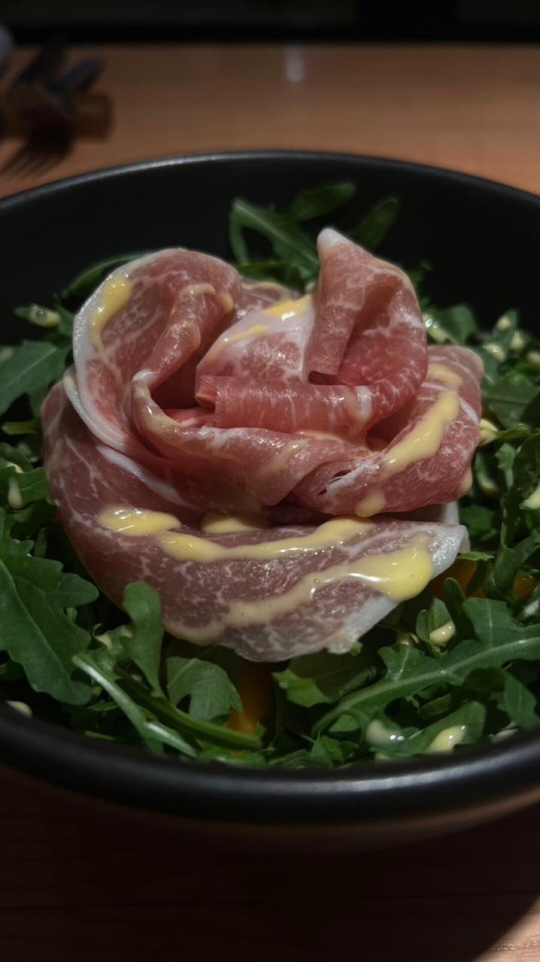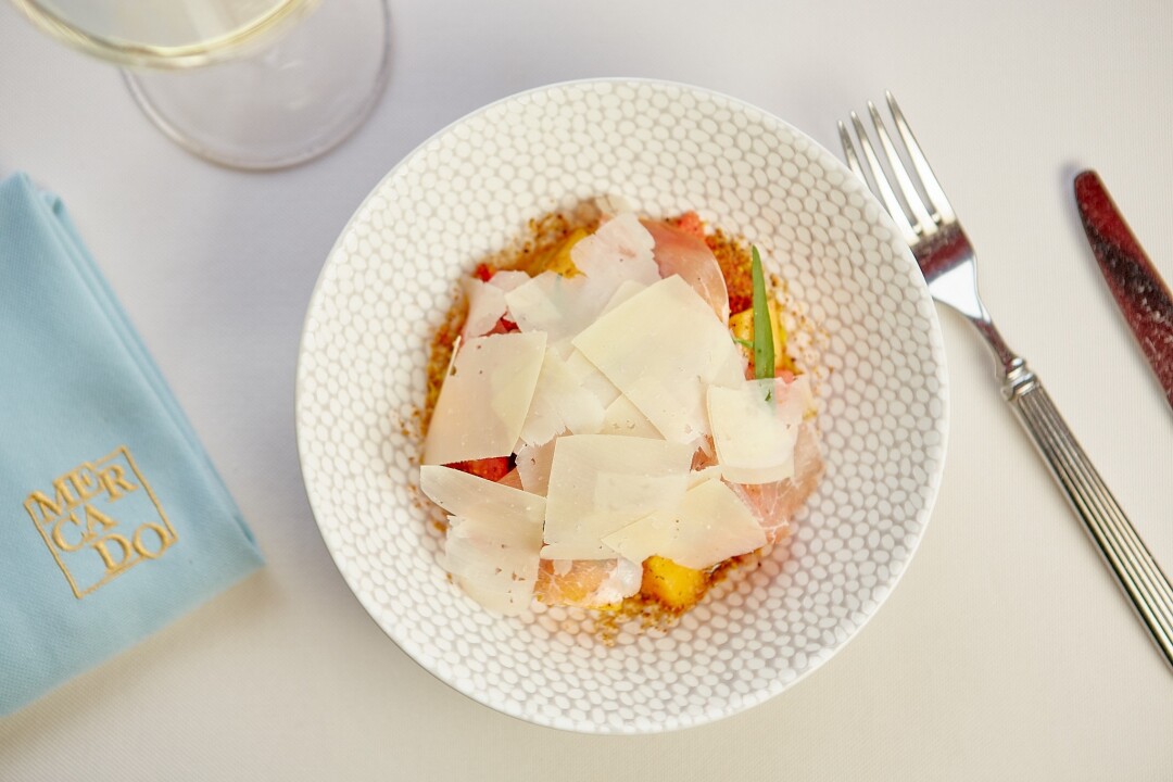 Помимо хурмы в салате Mercado del Sol найдется уже дефицитный арбуз и санкционная Прошутто ди Парма.