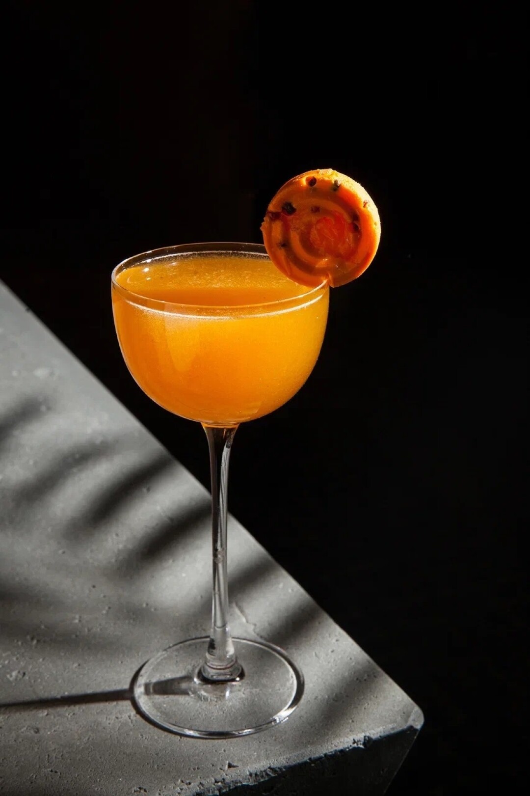 Вариант, при котором хурму можно выпить, придумали в грузинском «Вахе». Дистиллят и пюре из сезонного плода смешивают с апельсиновым кордиалом, переливают в тонкий бокал и украшают самодельной апельсиновой конфетой из белого бельгийского шоколада.