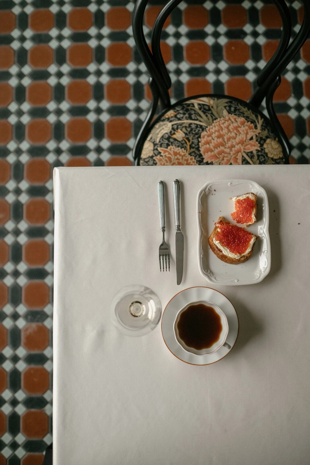 В новом русско-французском кафе в Доме Зингера отличная чайная карта. Например, «Русский Караван» от проекта «Нитка» моментально погружает в историю. Когда-то путь русских купцов из Китая до Москвы мог длиться больше года, тогда караван каждую ночь отдыхал на привалах, уберегаясь от холода и хищников кострами, дым которых пропитывал все вокруг, включая чай. В современном напитке используют купаж трех сортов из провинции Юннань, откуда и поставлялась в Россию большая часть, а для копчения используют карамельный дым кустарника саксаула.