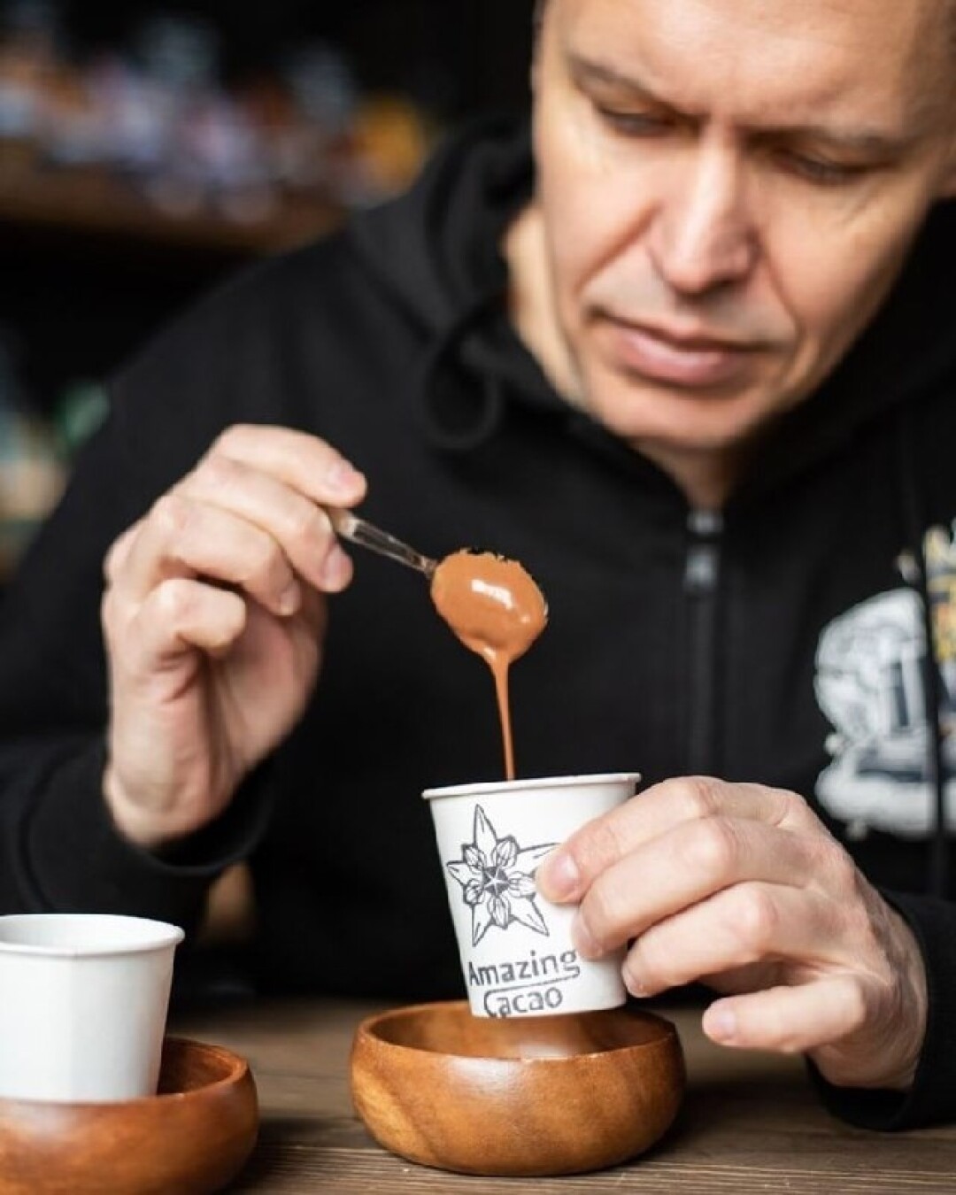 Горячий шоколад из какао-бобов, которые специально для Amazing Cacao не ферментировали, а просто высушили. Напиток отличается по вкусу от всего, к чему мы привыкли. Он основан на традиционном рецепте, в котором объединяются вкусы кукурузы, корицы, перца чили и ванили.