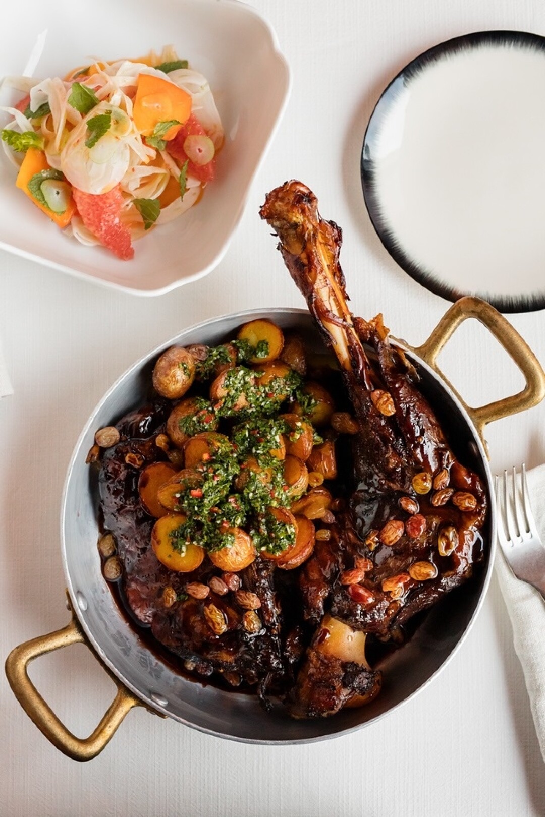 Шеф Маша Дементьева организовала (до 8 января) для нас специальное зимнее меню с оливье с запеченными овощами и лангустинами, лопаткой дагестанского ягненка, мегабутербродом с красной икрой и шампанским. Во главе десертов — домашний медовик с пчелиной пыльцой.