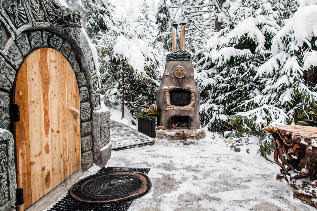 Комплекс с абсолютно невероятной мизансценой! Бани среди леса на разный лад: в одной, с вырезанной из речного камня ванной, много дерева и зелени, вторая — аллюзия на бани ацтеков, а стены другой слеплены из глины и сена. Если тибетский виброакустический массаж поющими чашами вам покажется тоскливым, выбирайте молодильный чан, подогреваемый живым пламенем огня. Проголодавшимся можно заказать снеки и квас прямо в спа, а сильно голодным — пройтись до ресторанов, расположенных на территории парка.