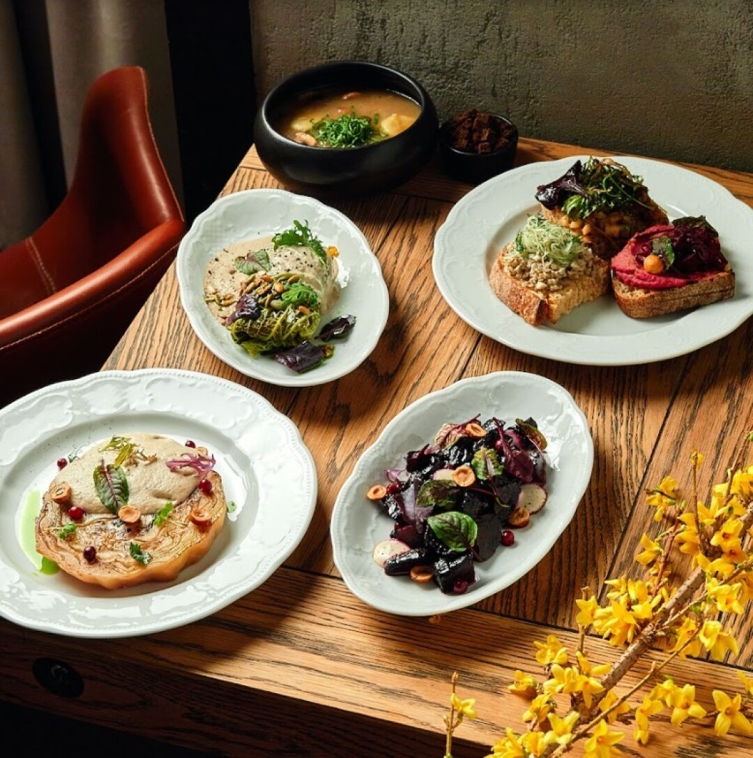 Простое и душевное меню в ресторане русской кухни напротив Казанского собора. До 15 апреля готовят голубцы с грибным кремом, салат с вяленой свеклой, стейк из капусты с ореховым кремом и много икры — грибной или баклажанной.