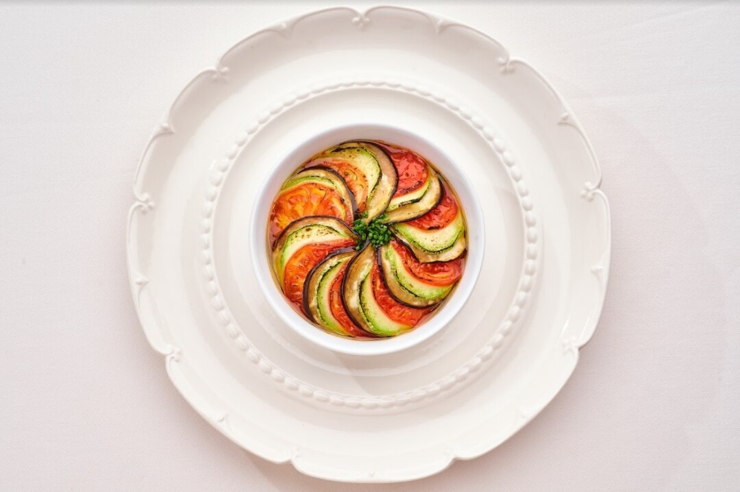 Меню на французский манер всем, кто соблюдает пост! Рататуй по классике, цветная капуста с миндальным качо э пепе и зеленое ризотто с артишоком.