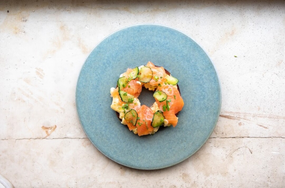 Шеф Александр Пименов вернулся со стажировки в тель-авивском farm-to-table ресторане Claro и обновил меню. С 10:00 до 17:00 здесь сервируют завтрак и обед, с 17:00 до закрытия – ужин. Есть раздел своих сыров, хлеба и деликатесов лавки, которые можно купить с собой. По утрам выпекают круассаны, делают бейглы с лососем, скрэмбл во французском стиле с козьим шевром, говяжьей грудинкой медленного запекания и яйца пашот с овощами и греческой скордалией, то есть хлебно-картофельным соусом-пюре. В вечернем меню обратите внимание на карпаччо из северной креветки с судаком, джонджоли, шпинатом и клубникой, панир темпуре с цитрусовым соусом и салатом из маринованного овощного физалиса.