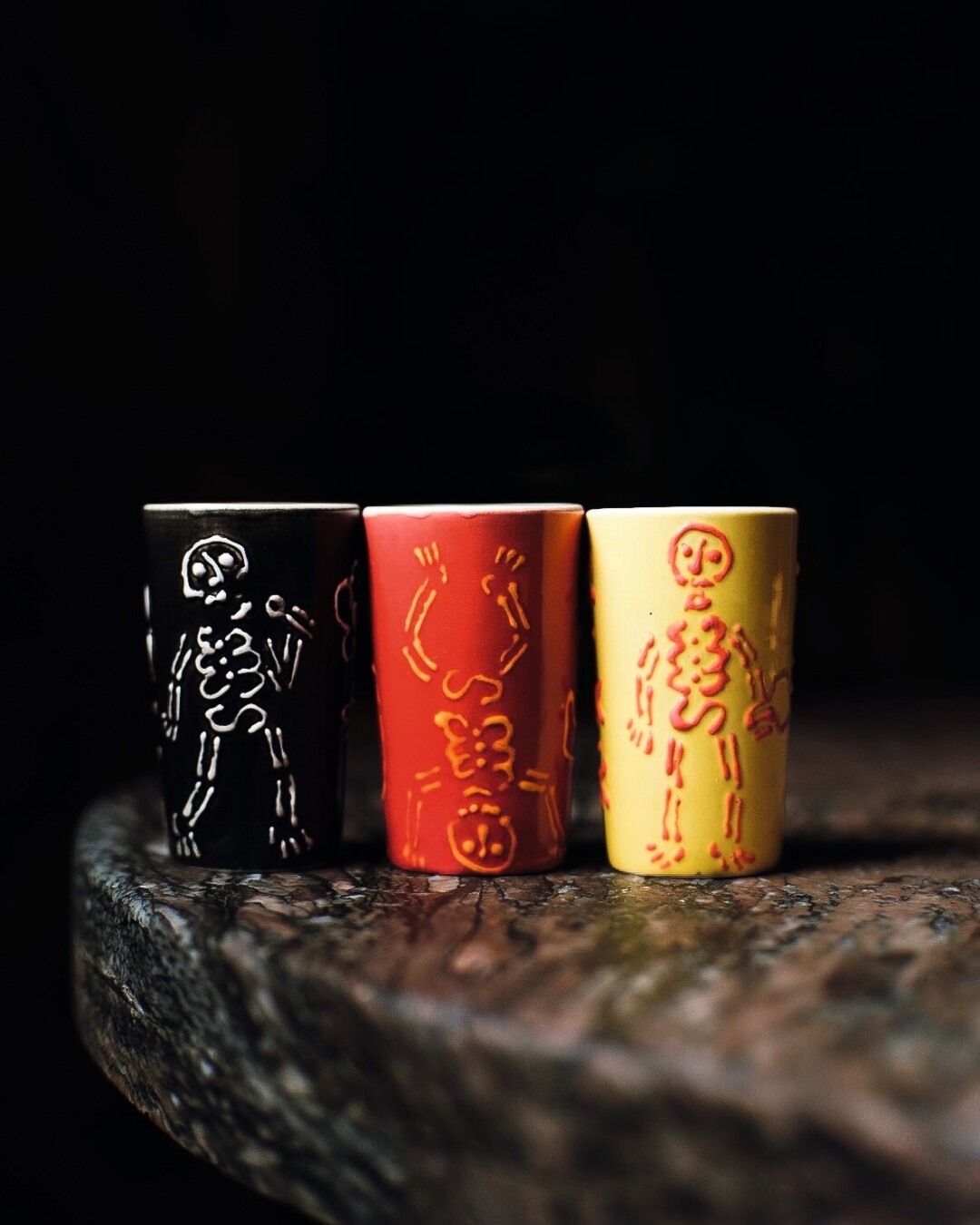 Рюмки ручной работы из Juan, изготовленные на заказ в гончарной мастерской, а затем расписанные художником Димой Гусаром.