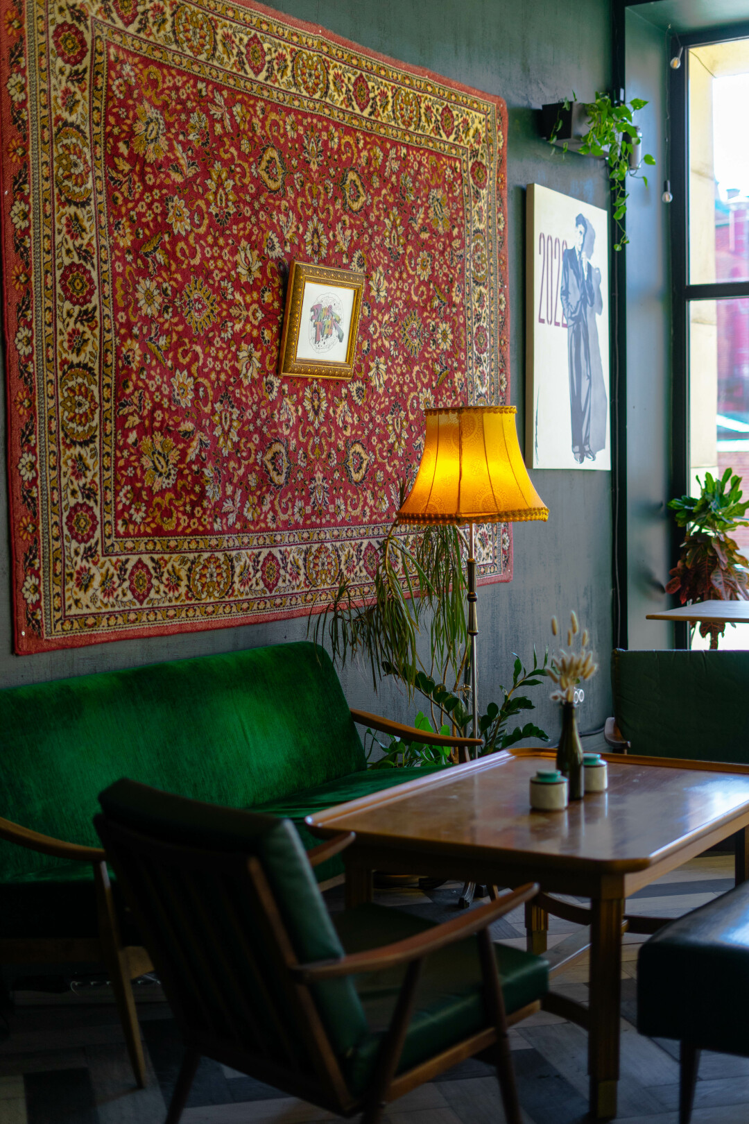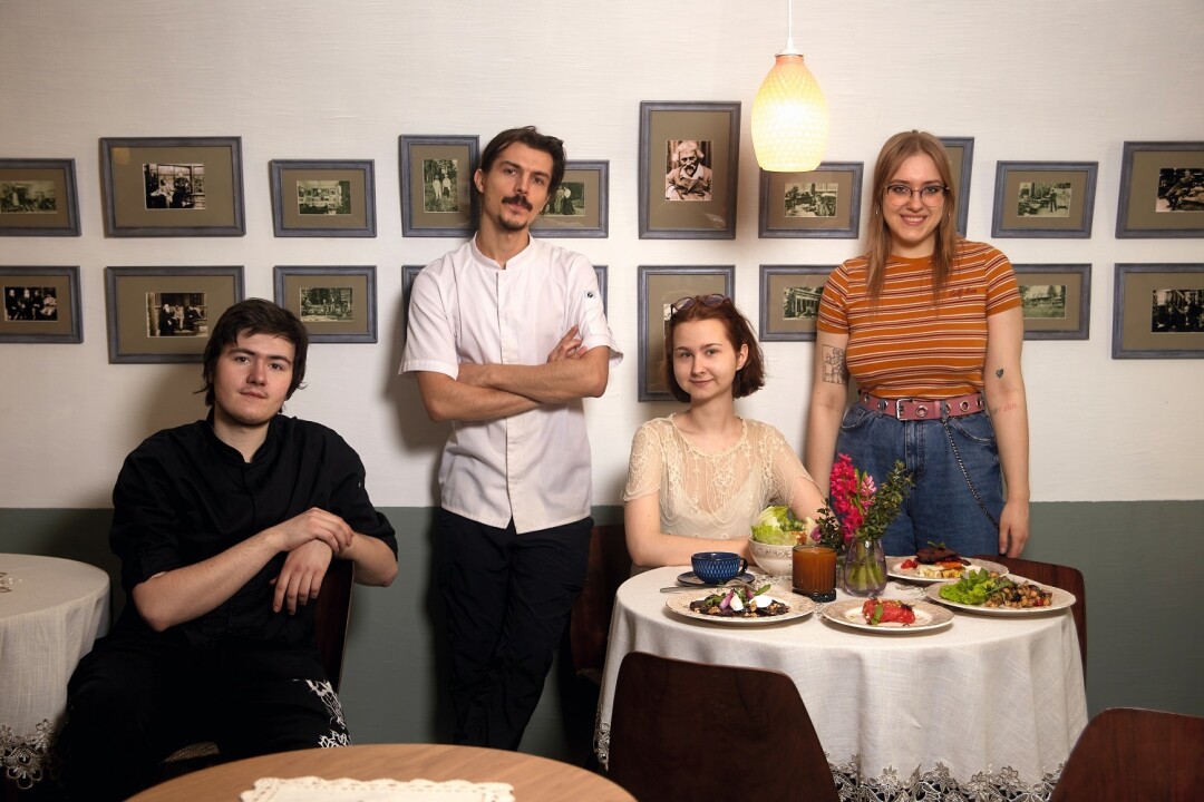 Вегетарианское кафе на Гороховой — посвящение художнику Илье Репину и его жене (суфражистке!) Наталье Нордман-Северовой, которая закатывала в усадьбе в Куоккале (нынешнее Репино) знаменитые растительные обеды. Среди репродукций, фотоархивов и вязаных скатертей кормят бургером «Илья Ефимович был бы рад» с чечевичной котлетой и более замысловатыми блюдами: черной икрой из чиа и стейками из вешенок.