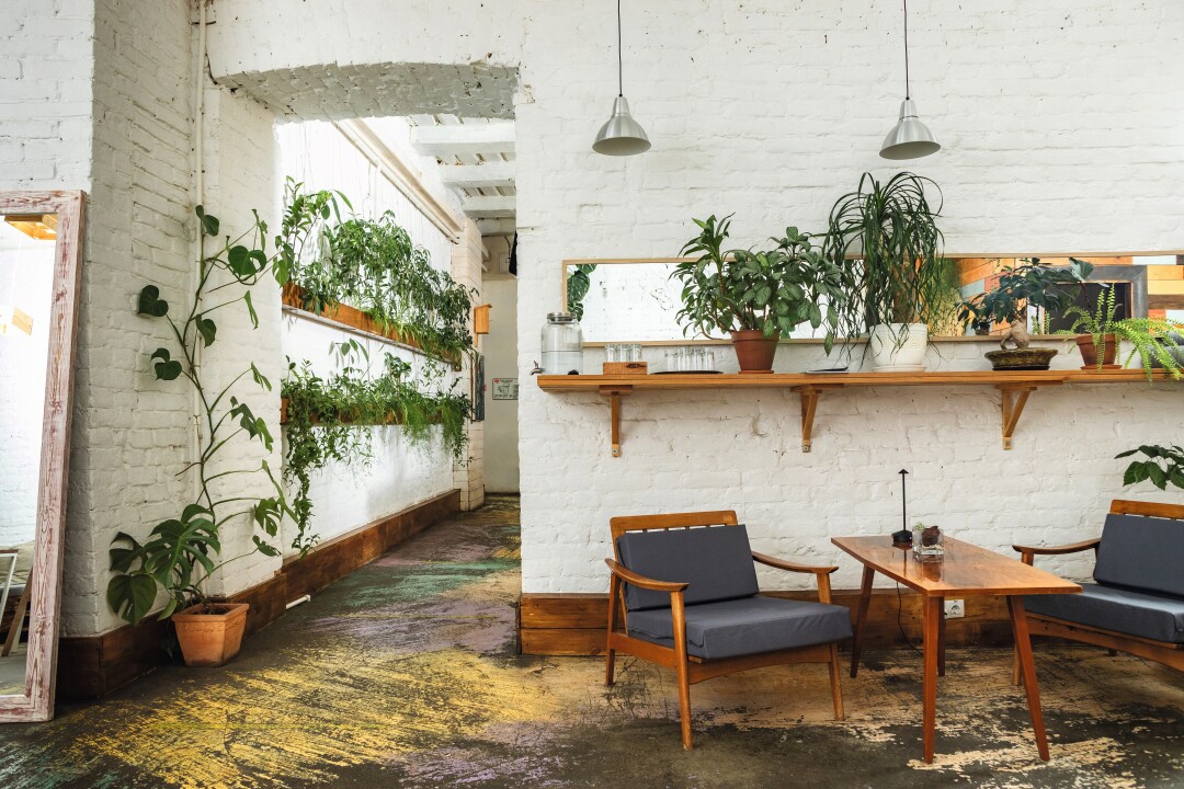 Растительное кафе во дворе кластера «Ленполиграфмаш» напротив Ботанического сада. Сюда приходят за тортами — в витрине красуются наполеон, маковый или морковный торт — или перекусить веджи боулом с темпе и соусом чимичурри и лазаньей. За соседней дверью работает zero waste лавка с ершиками для стеклянных коктейльных трубочек и модными авоськами.