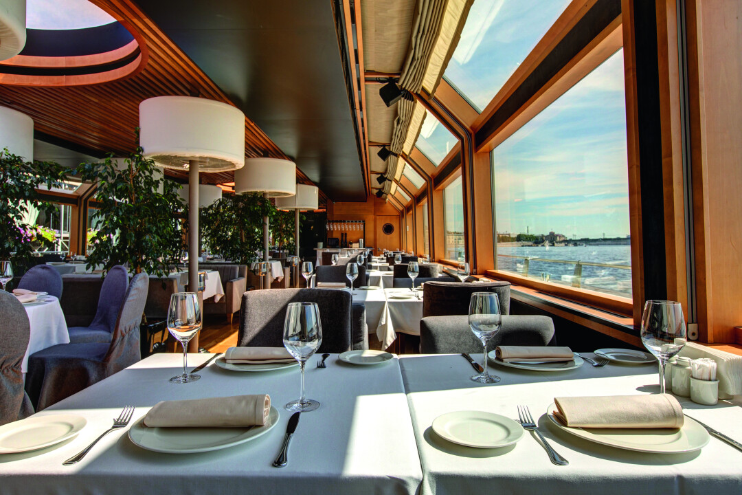 Главный тусовочный лайнер-ресторан от команды Kuznyahouse на Новой Голландии: в салоне играют на рояле, на палубе отрываются на рейвах с сауэрами в руках. Каждый день по пять рейсов, каждую неделю приезжают с гастролями именитые шеф-повара. Маршрутов несколько: днем в основном по Неве от Смольного до «Севкабель Порта», ночью выходите в Финский залив и встречаете развод мостов от Троицкого до Благовещенского.