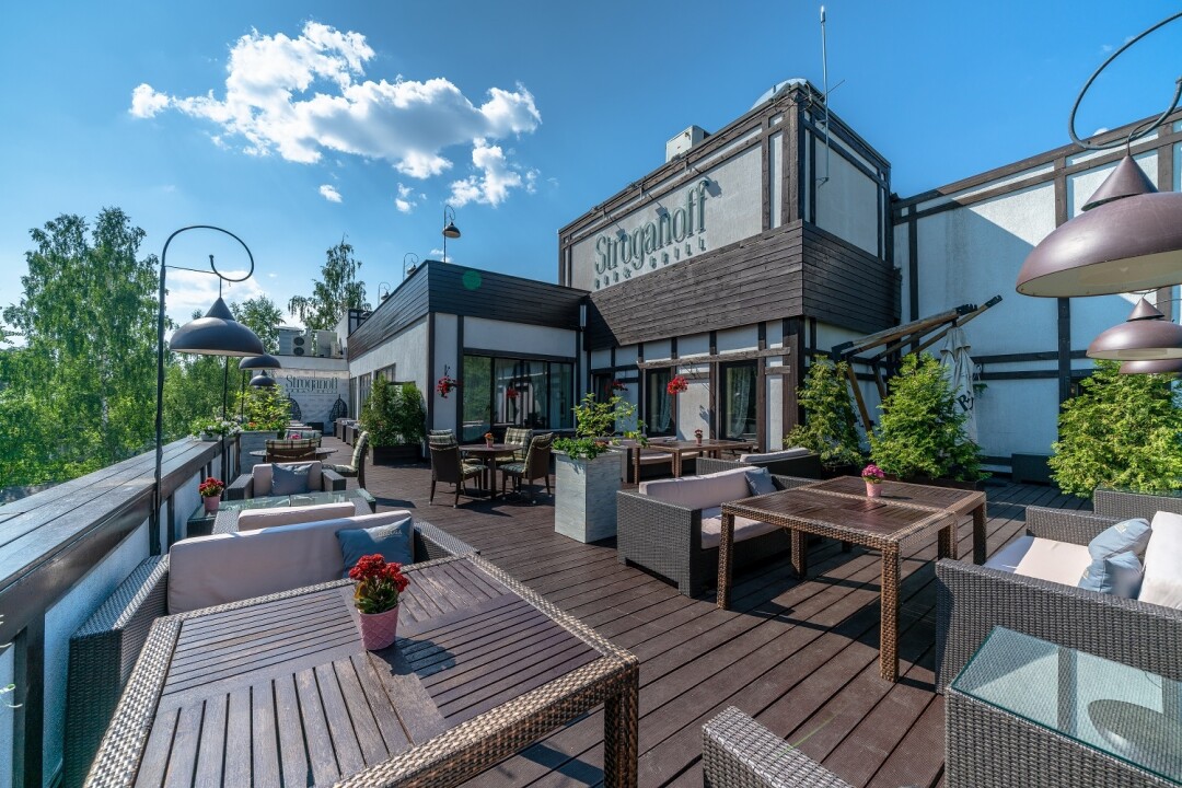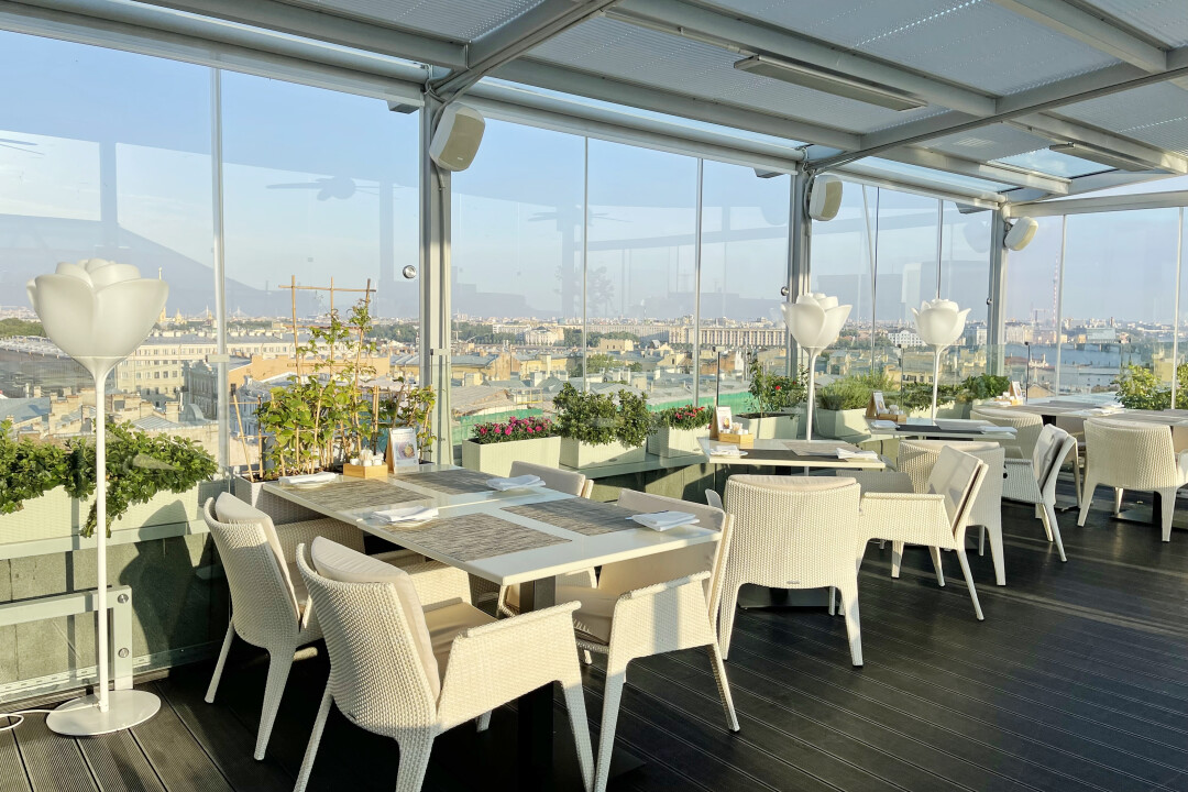 На крыше «Ленинград Центра» есть две террасы, и рассчитаны они на 200 гостей (да!). Терзайте свой шатобриан, поглядывая на Таврический — в хорошую погоду за лужайками памятника садово-паркового искусства виден «Дом с башней», где собирался цвет Серебряного века от Мейерхольда до Ахматовой. Или дегустируйте вина «Усадьбы Дивноморское» на солнечной стороне в лаунж-зоне с мягкими диванами: они укрыты от ветра и дождя.