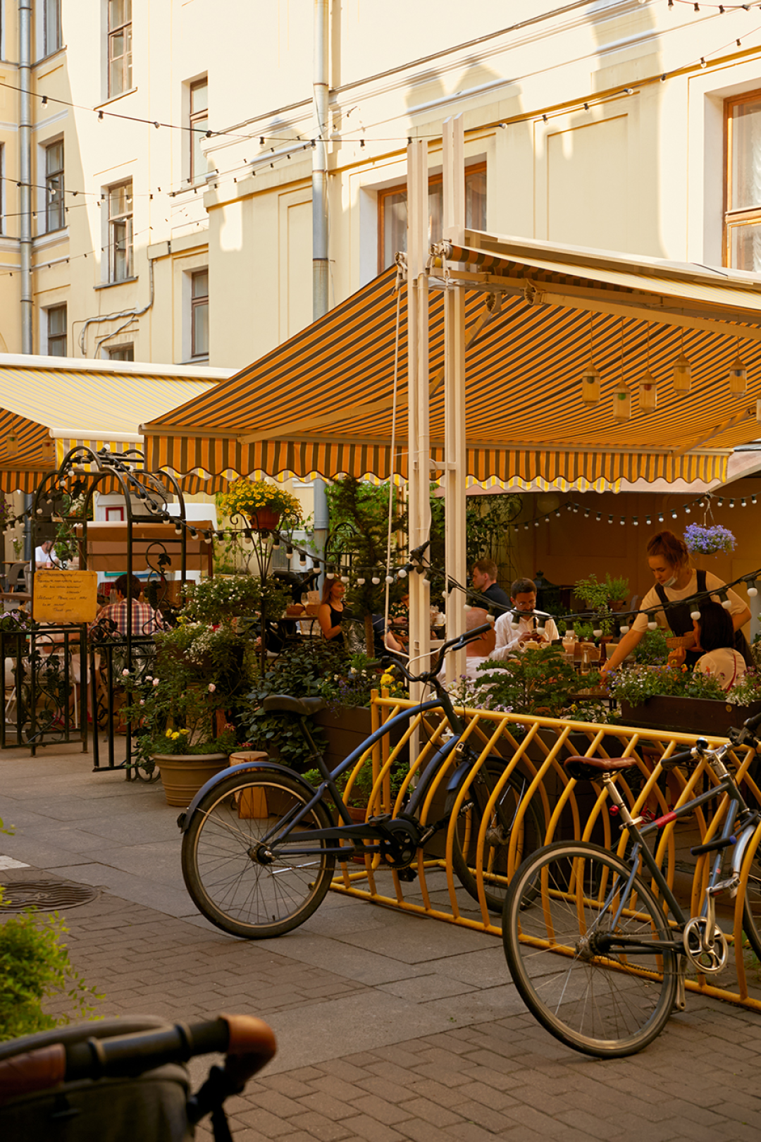 Потайной дворик, о котором не знают даже многие фуди, — отличное место, чтобы элегантно позавтракать круассаном с мортаделлой и скрэмблом и обмыть покупки из ДЛТ. Зелень, диваны и раздвижная крыша, сезонные овощи, фермерские сыры (буррата с трюфелем!) и морепродукты. Но главное тут — тишина и уют, в 5 минутах от Дворцовой площади это нонсенс.