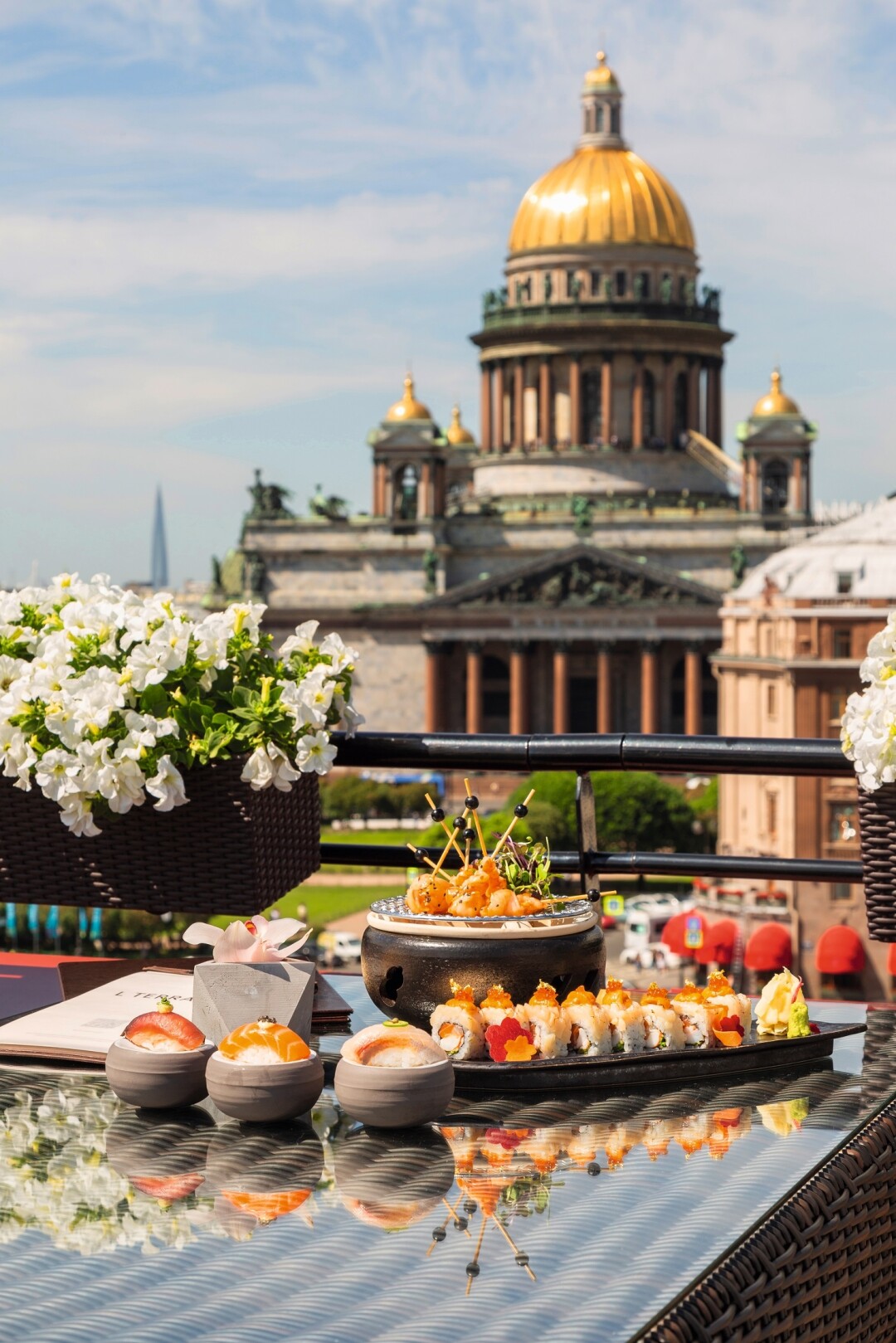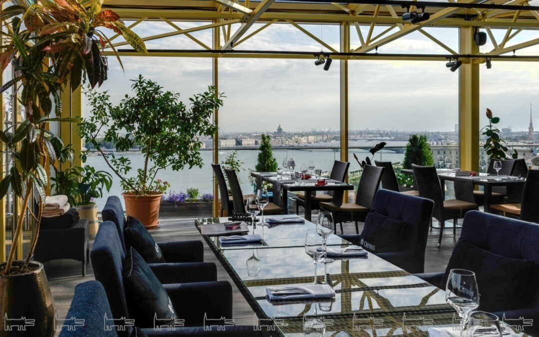 Тусовочная терраса при отеле SO/ St. Petersburg: здесь на вечерних диджей-сетах участники ПМЭФ встречаются с петербургским бомондом. Лучшее место, чтобы залететь на препати: чокаться шампанским с видом на Исаакий, закусывая тунцом в устричном соусе. Бонус: площадку можно снять под вечеринку и провести здесь свадебную регистрацию.