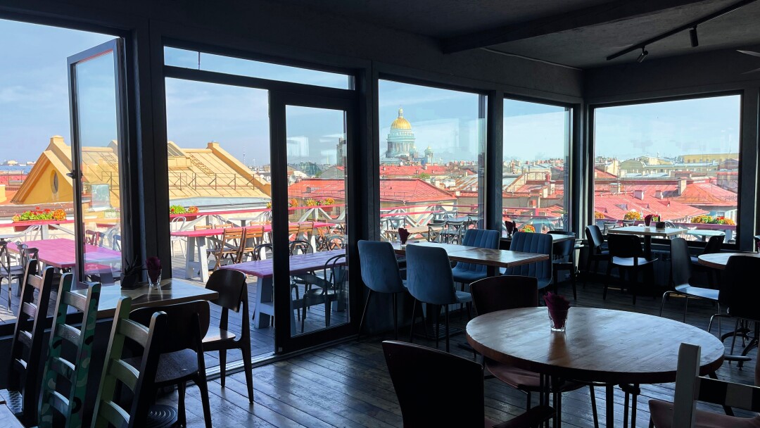В ресторане при Hotel Indigo вечер на террасе 8-го этажа состоится при любой погоде: там продвинутая защита от ненастья. Вид тут дают под лозунгом «Собери их все»: Исаакиевский собор, Петропавловская крепость, Спас на Крови и крейсер «Аврора» — глаза разбегаются.