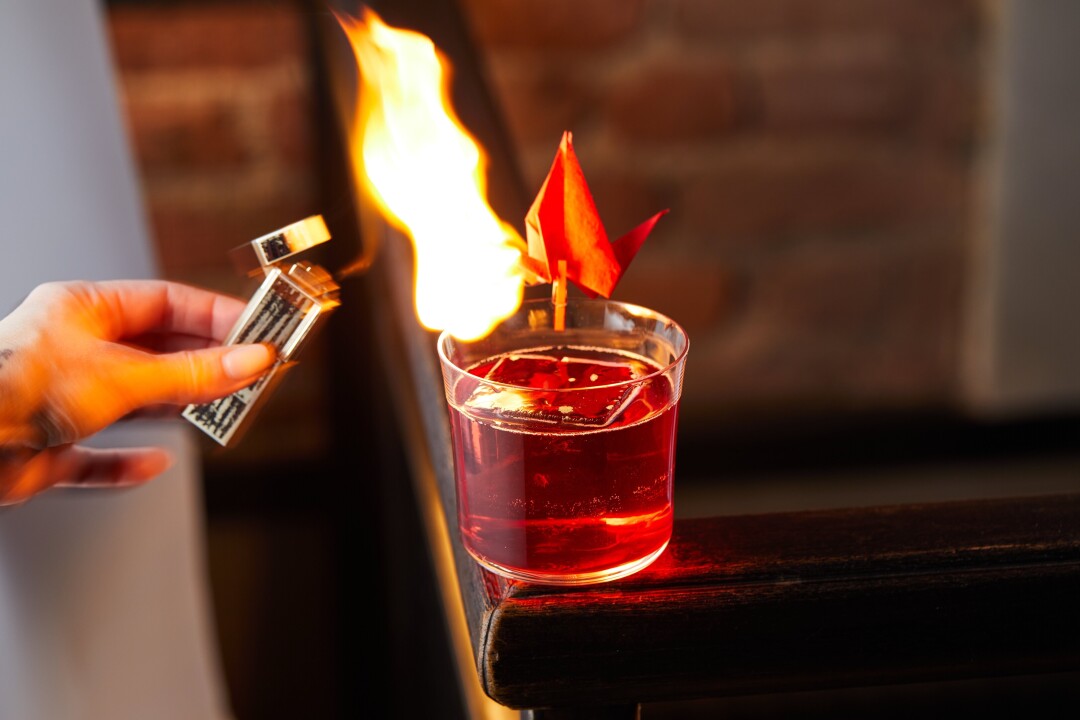 При подаче русского народного негрони в ресторане напротив Казанского собора поджигают бумажную птицу, которая сгорает яркой вспышкой. Также бренд-бармен Дмитрий Яцикман добавил в коктейльную карту еще фольклора: «Свет мой, Зеркальце» с жасмином и персиком , «Кот-Баюн», вместе с которым выносят поющий деревянный макет храма Спас на Крови.
