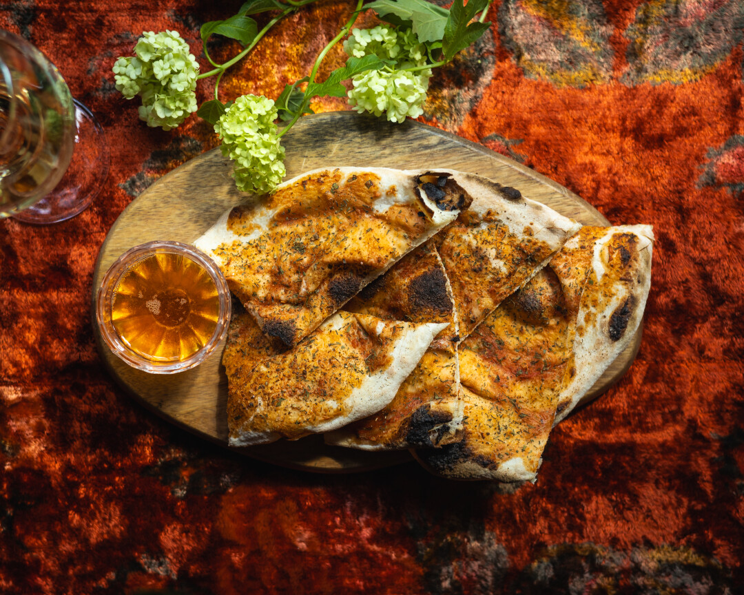 В грузинском ресторане, что находится в историческом особняке князя Кочубея весь июль действует итальянское меню. Пробуем фокаччу, которую готовят по традиционным рецептам из пшеничной муки,  но запекают грузинскими специями и подают с острым кахетинским маслом, ньокки с обжаренным куриным филе под сливочно-чесночным соусом шкмерули и вялеными томатами или тирамису с пятилетним грузинским коньяком и карамелизированным грецким орехом.