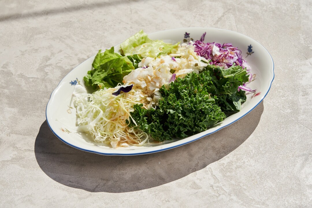 Кейл, романеско, белая, красная, цветная — у столичной троицы шефа Чистякова, ресторатора Пинского и медиадивы Собчак зеленый салат (в Москве они давно уже маст) бьет внутривидовые рекорды. Ромейн, оливковое и кунжутное масло с кориандром сопровождает семейство крестоцветных, вид на Эрмитаж — вашу ЗОЖ-аскезу.