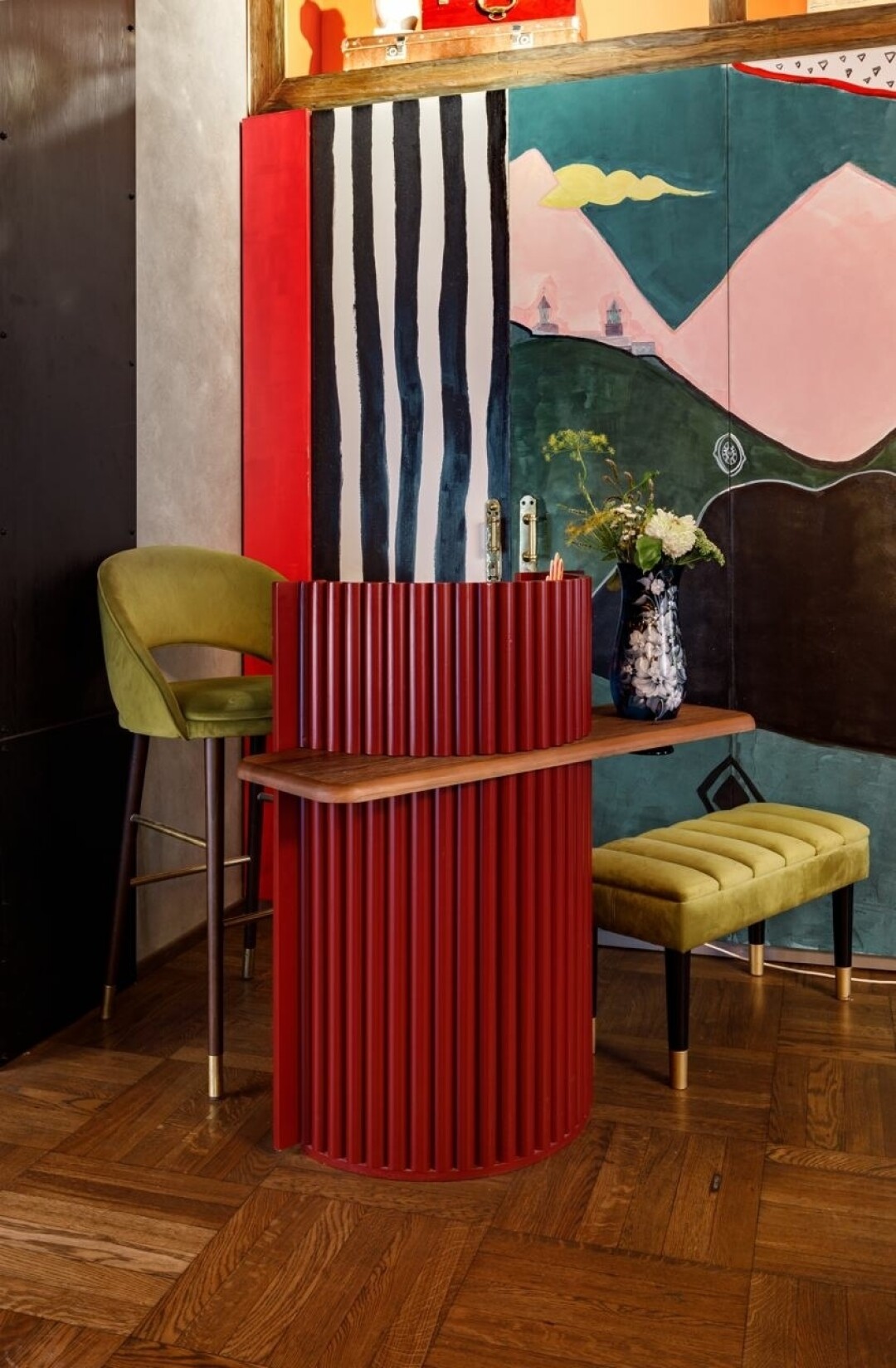 Дофаминовый ресторан в районе Пески. Секси-ватрушки Екатерины Турковой из Cococo Bistro, завтраки весь день и нарядная кухня Никиты Голубева из Zelenoe Bistro: панкейки карбонара и скрэмбл с угрем, фета с жареным виноградом и ризотто с щавелем. А еще абажуры с гавайскими юбками, слоны барельефами и аж две террасы.