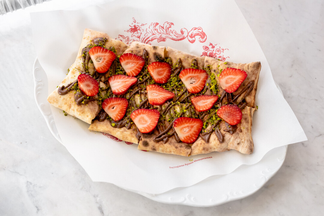Для тех, кто готов есть пиццу на завтрак, обед и ужин, можно есть ее еще и на десерт. Про тирамису из Probka уже и так сложено много легенд, а эту пиццу можно еще и разделить с детьми: воздушное тесто, много нутеллы, фисташки и свежая клубника.