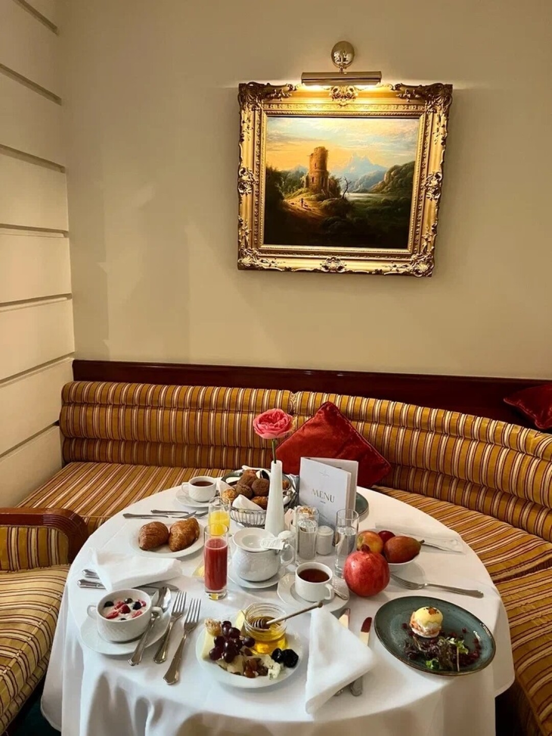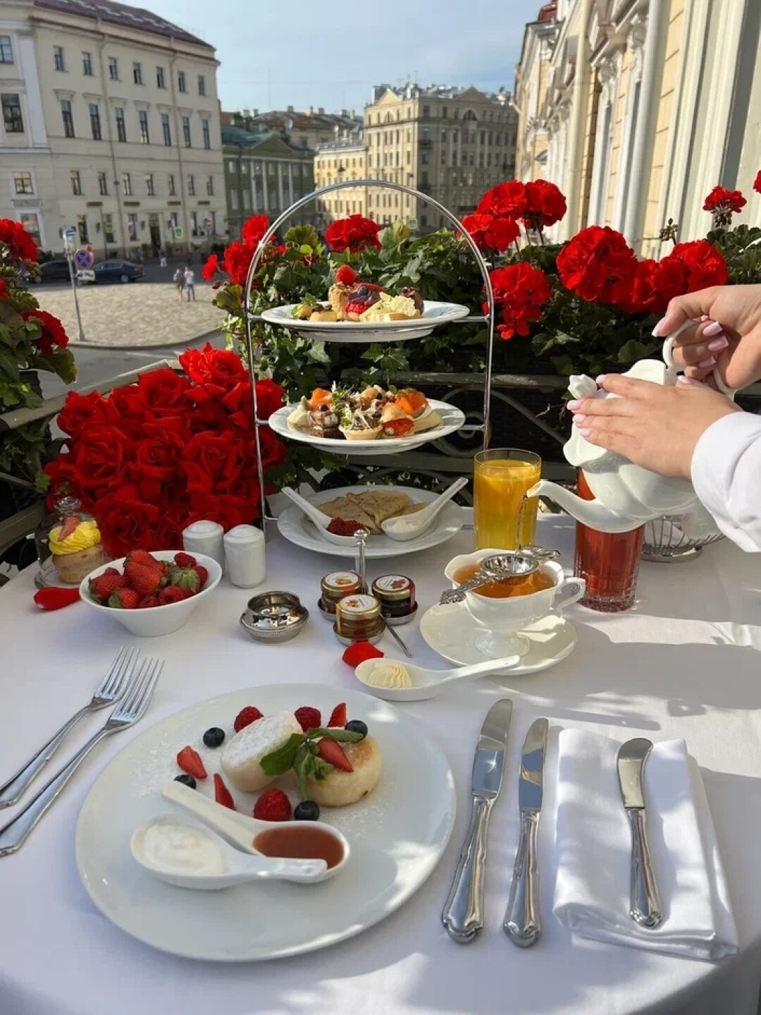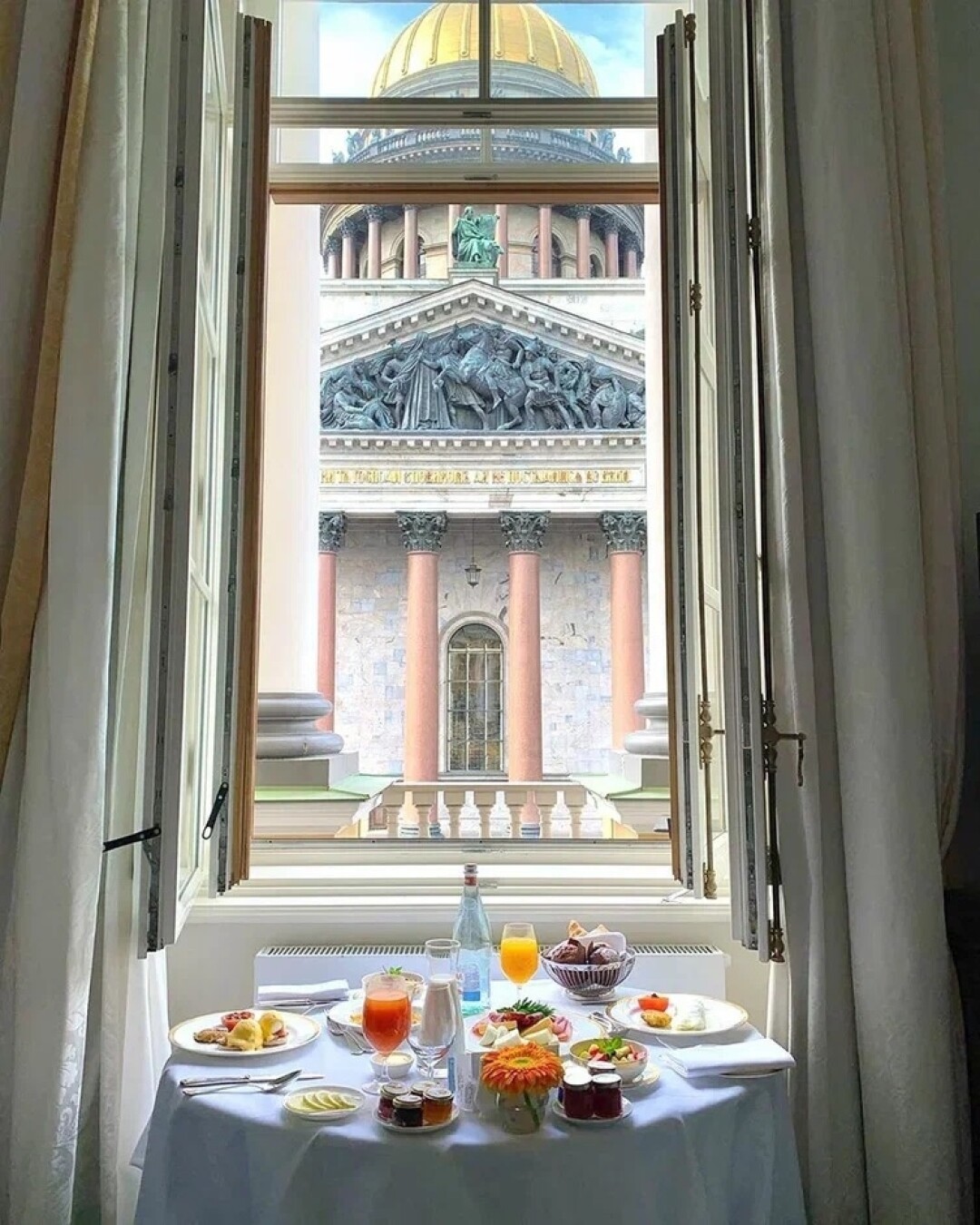 Завтрак в «Астории» — целый ритуал: вид на Исаакиевскую площадь, старинный интерьер и кобальтовая сетка Императорского фарфорового завода на посуде — такая же часть меню, как сама еда. На выбор — а-ля карт или три готовые формулы завтрака — «Континентальный», «Здоровый» и «Парижский».