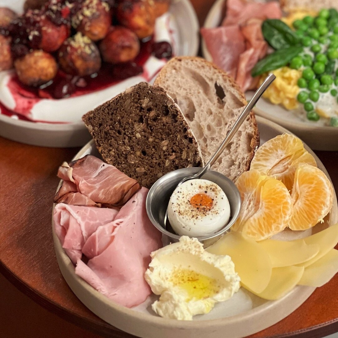 Красивый и функциональный фуд-холл на первом этаже апарт-отеля неподалеку от площади Александра Невского располагает завтраками нескольких резидентов. Например, кофейни Bolshecoffee, корнер Yes, Honey! c авокадо-тостами, драниками, блинами и омлетами и пекарня Kuta от сети Chang, где дают бутер с красной икрой и взбитым маслом.