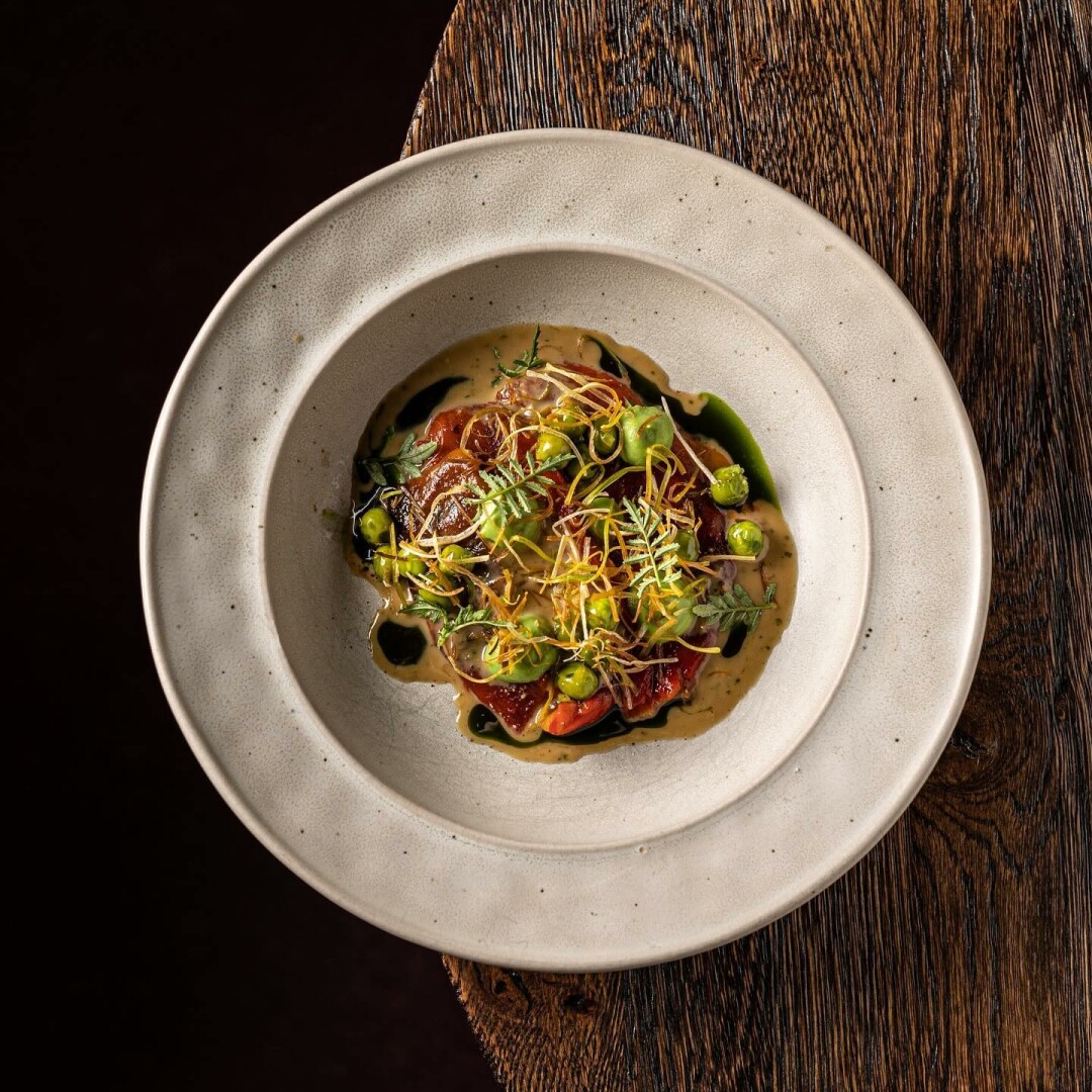 Зелень — босоногое лето! — вошла в меню нового сезона в Sight. Зелёный горошек и фенхель, зеленое карри и грибной дюксель, свежие ягоды и карамелизированный манго – все уже тут. Легкая закуска из фермерской буратты с салатом из запеченного цукини с винегретом из овощей и копченым миндалем. Или филе трески, приготовленное на углях, которое подают с обжаренным в вине айсбергом, нежным пюре из нута и сливочным соусом.