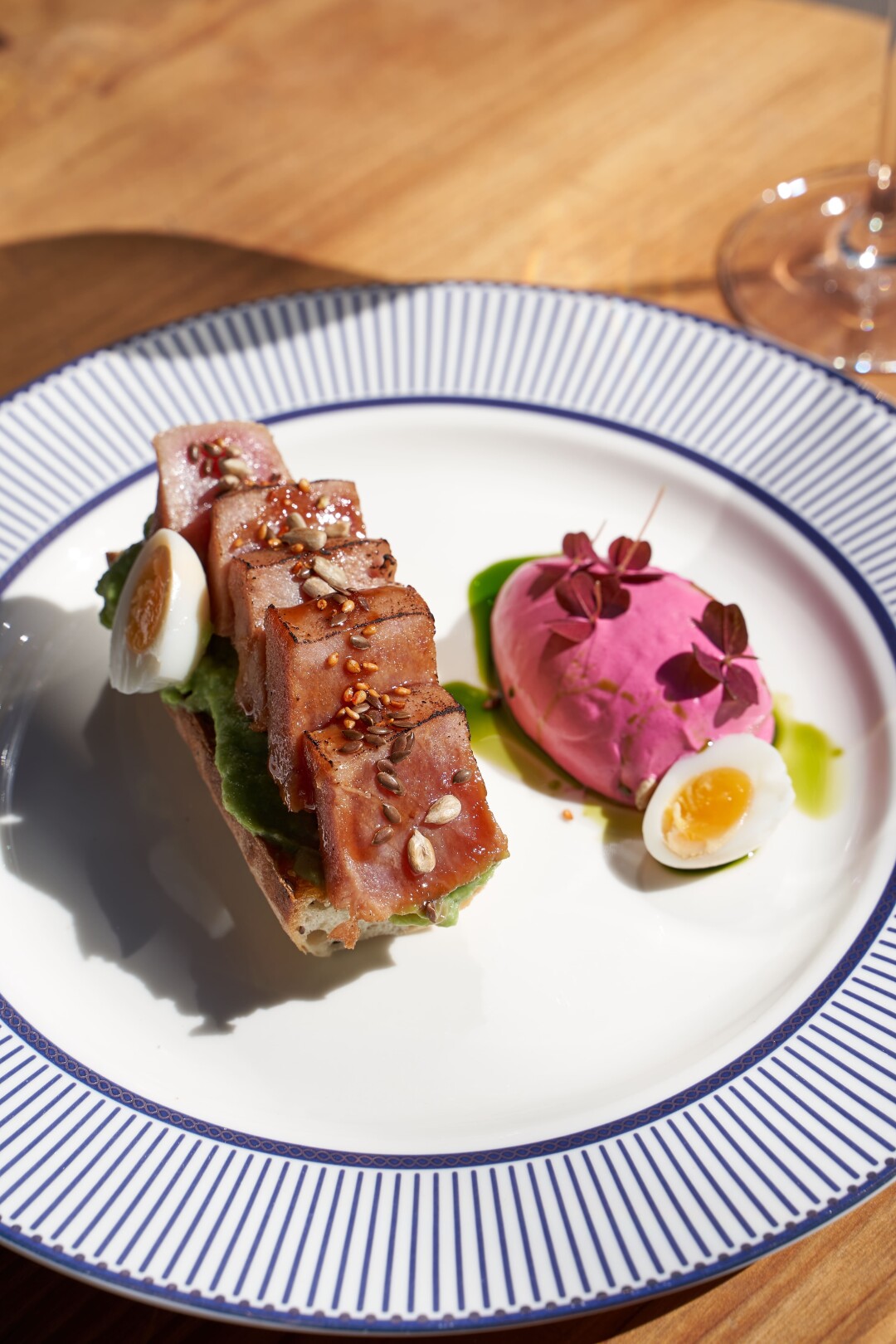 Новые завтраки (с игристым безлимитом с понедельника по четверг!) появились в ресторане «Сон». Дают зерновой багет с гуакамоле, тунцом татаки и творожным кремом из печеной свеклы, сытные блины с муссом из угря и соусом из белых грибов и икру из овощей конфи с креветками в соусе биск и яйцом пашот.