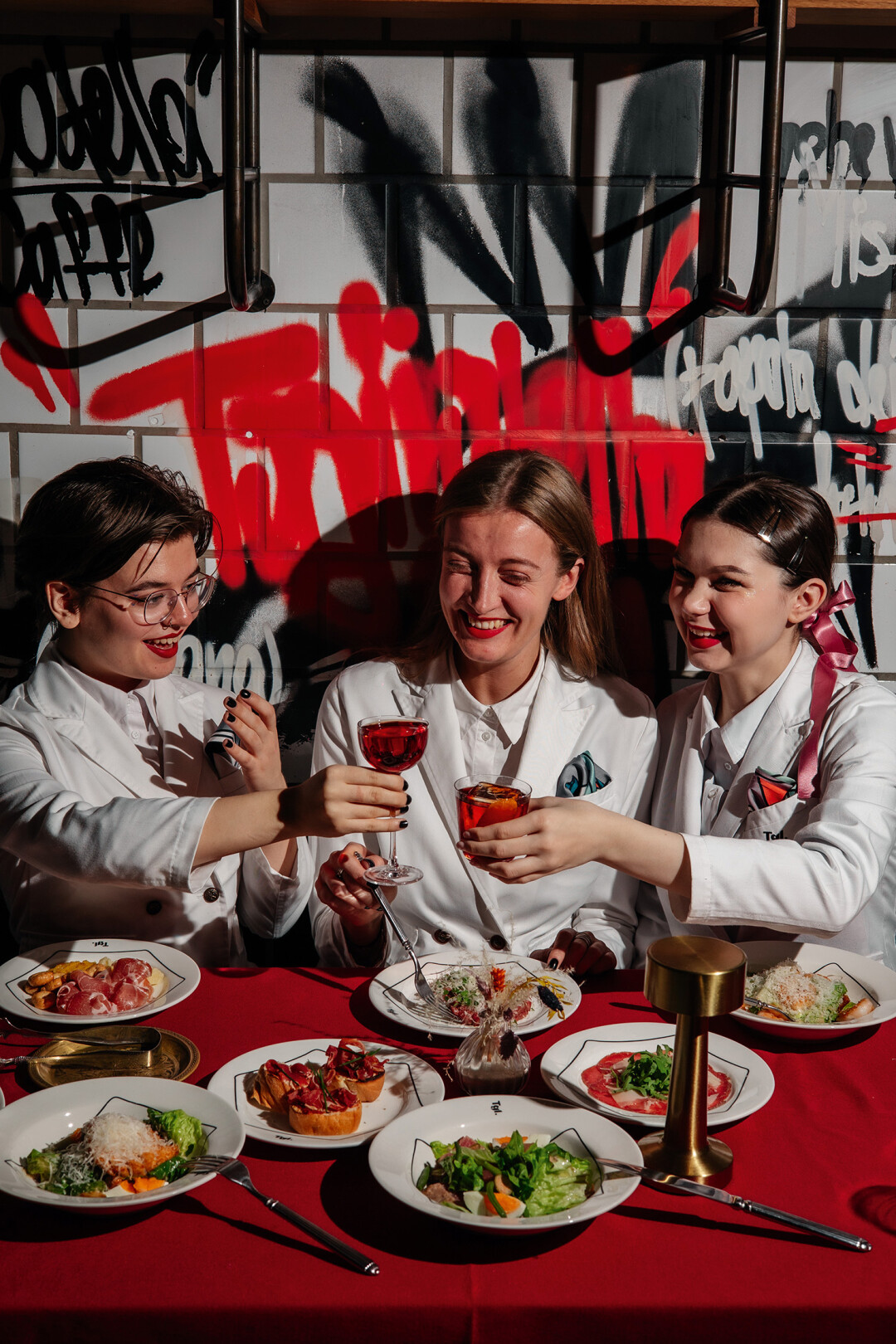 На аперитив к самому титулованному барному коллективу Восточной Европы (да, речь о команде El Copitas!) мы заныриваем с Литейного: Tagliatella работает как телепорт в миланские лобби-бары. За стойкой — только девушки: лучезарные барледи в белоснежных кителях смешивают спритцы. А фонтан негрони по имени Олег зовет на «Горькие вторники» — дегустировать амаро и биттеры.